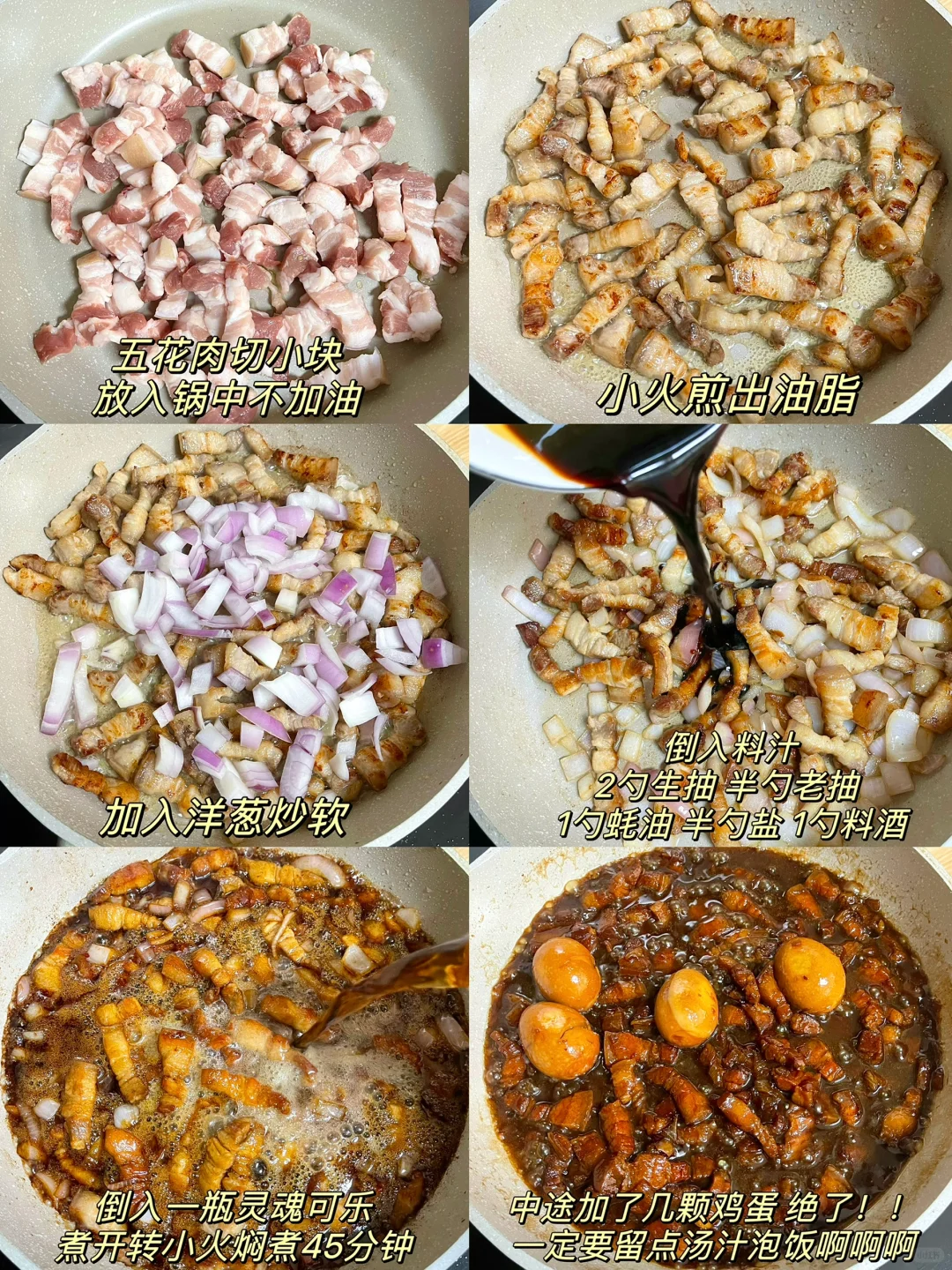 可乐卤肉饭!! 香浓软糯 拌上米饭香晕了啊啊啊 鸡蛋一定要加!! 浓郁的汤汁用来拌饭真的没有人能拒绝! 而且做法还巨简单!! 食材:五花肉 可乐 洋葱 鸡蛋 步骤如图⬆️大人小孩都爱吃!