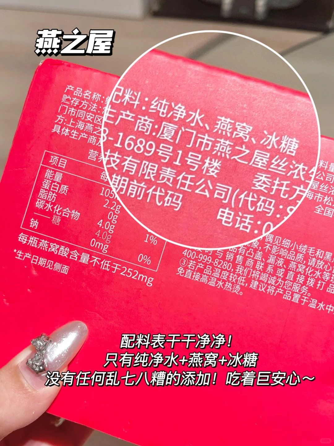 两款燕窝都是0脂肪0防腐剂0添加剂的,只有燕窝、冰糖和纯净水(均有无糖版本哦~)