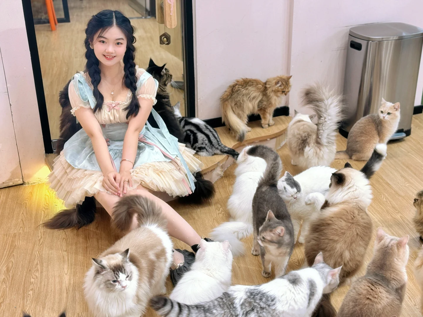 🐈撸猫:这是我见过猫咪最漂亮最可爱的撸猫馆了!品类很丰富,有缅因、布偶、英短、英长、豹猫等等,猫猫职业素养很高,一进门就都跑来贴贴蹭蹭,馆内饮料也可无限畅饮。拍照用人像模式非常出片,可以自动调节光线弥补顶光问题。