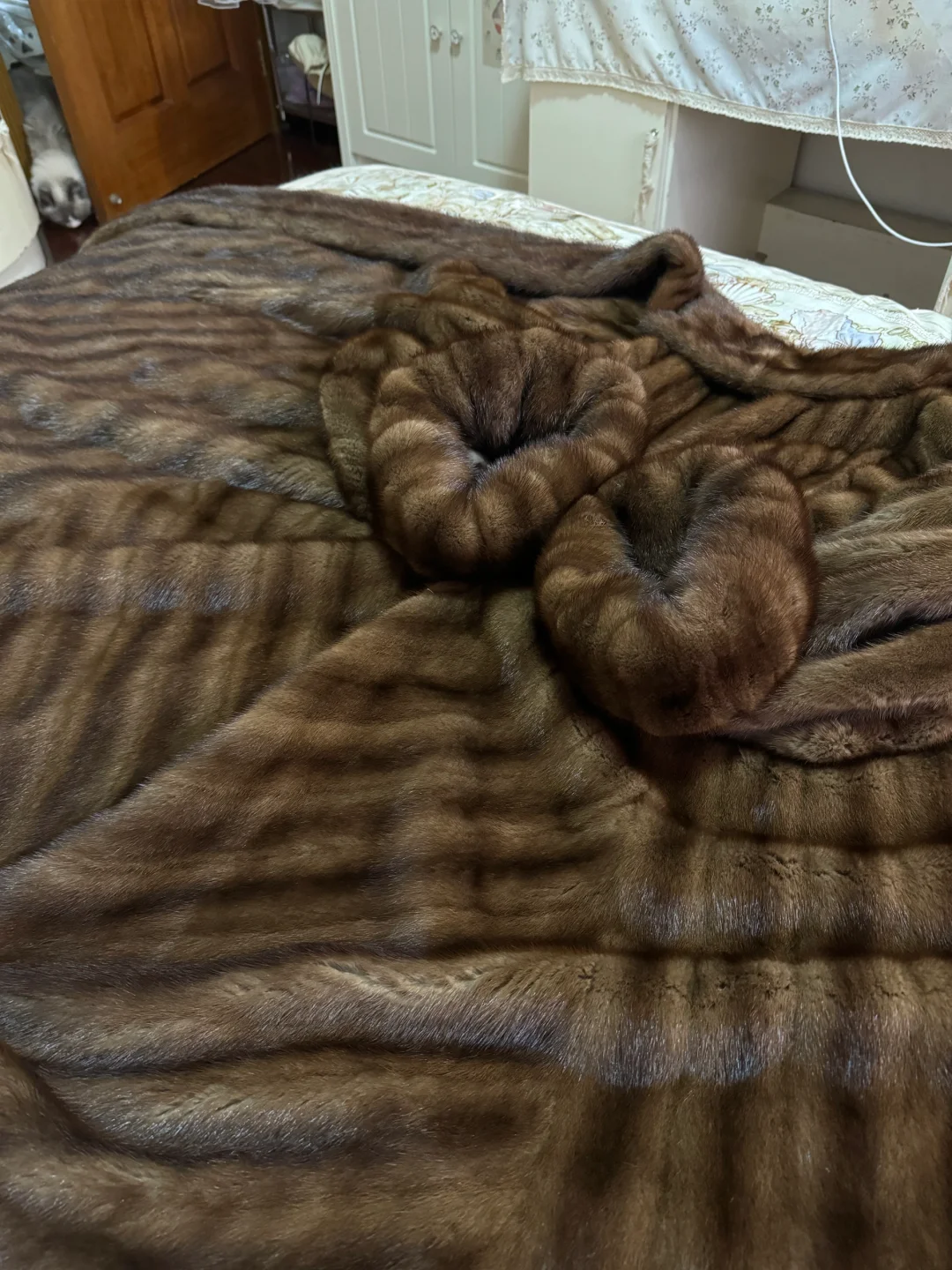 未醒毛状态已如此优秀,巨肉比我手还大好多的南瓜挽袖,触感如细腻真丝般丝滑的油亮毛绒,柔软如水的小母貂皮板,3米大摆大到我的床都铺不下,毛巾领优雅大气,意大利精湛的制作工艺让它版型好得稀缺,数了一下这件衣服保守估计至少用到了50只貂,上身显肩窄又显瘦[色色R] 它是顶级原料与顶级工艺的强强联袂,是优雅高贵与动物灵性的完美融合,它不只是一件衣服,更是一件不可复制的珍贵艺术品🖼️ 这是我目前手里价格最高的一件貂,第一次体会到💰的魅力