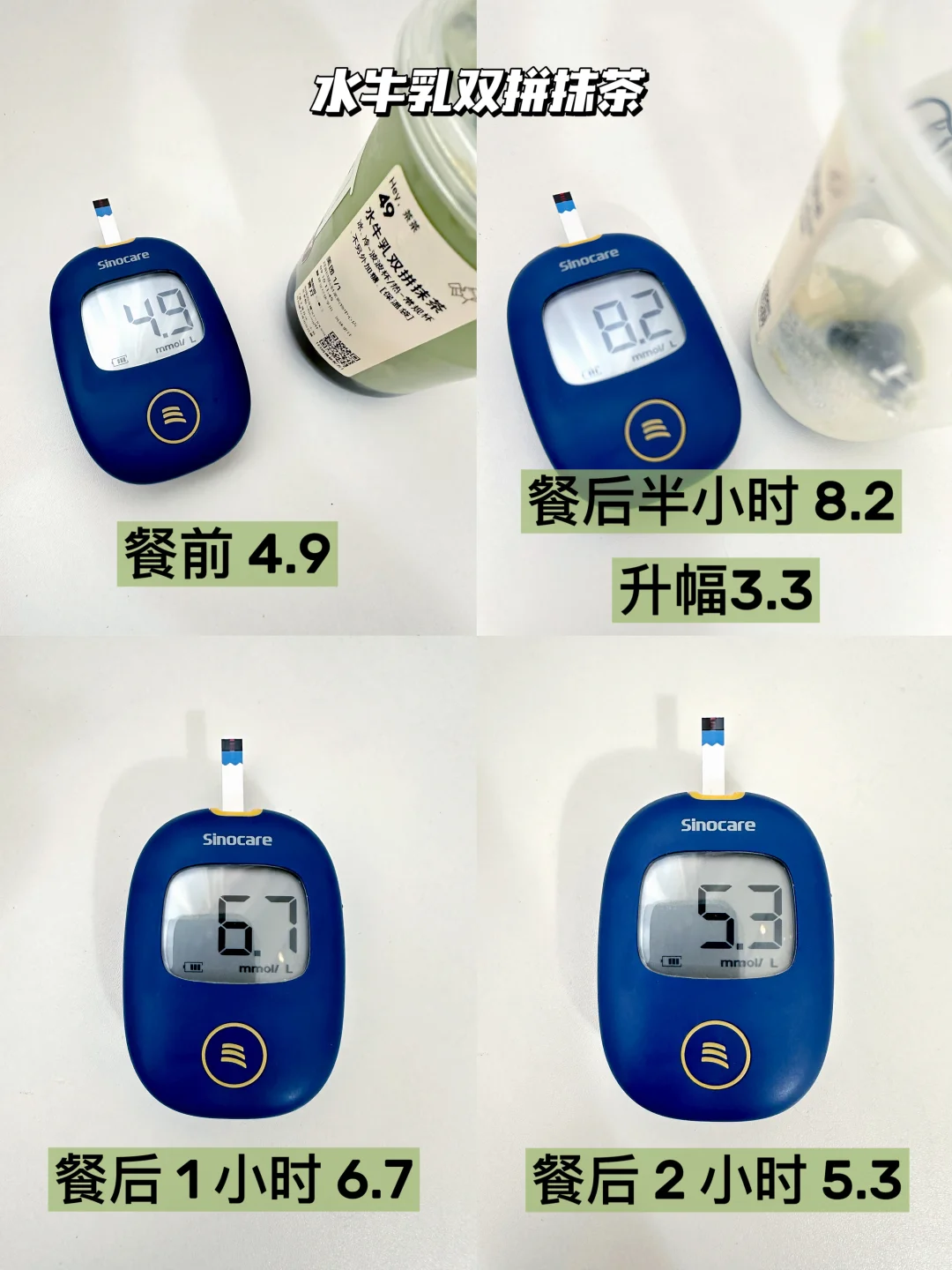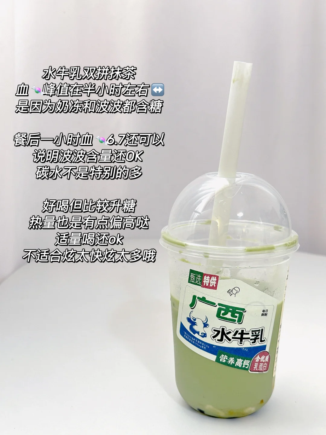 水牛乳双拼抹茶,血🍬峰值在半小时左右↔️是因为奶冻和波波都含糖〰️