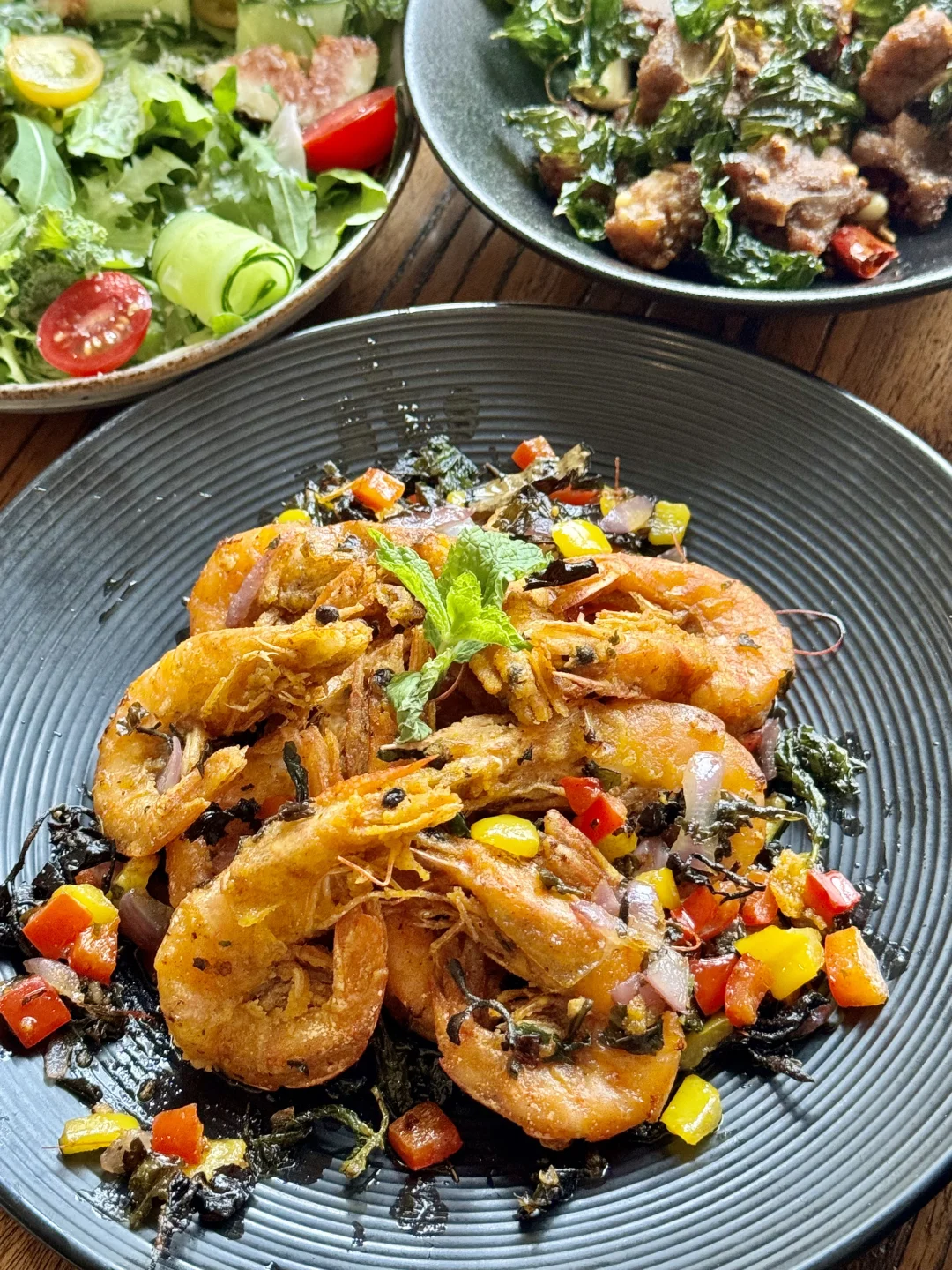 🍤肉桂严岩茶炒椒盐大虾🦐,双重美味,每一口都是惊喜!