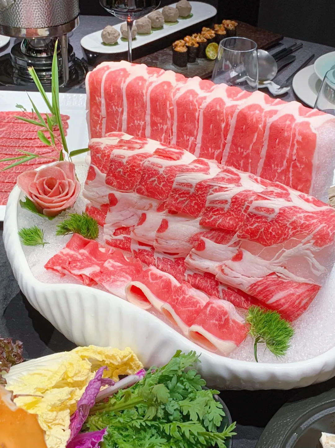 🥩我还第一次尝试了生态鸸鹋肉和梅花鹿腿肉的组合🥩。肉质鲜嫩,口感紧实,根本停不下来,真的吃不够哇😭。
