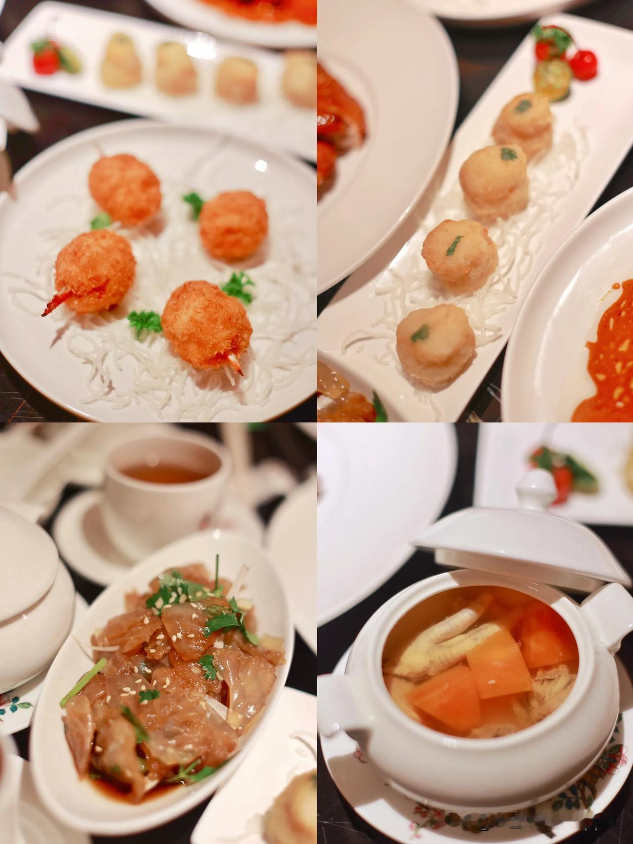 秋天就是要约会呀,感受一下秋日胜春朝的美好~和姐妹们相约好吃又好逛的侨福芳草地购物中心,这里的新明园餐厅是我们几个小姐妹都喜欢的餐厅,在对于吃这件事的热情上,似乎我们大多表现的都比其他事情来得热烈,享受一顿丰盛的秋日大餐~晚上再去楼下的伊藤ITO,边听现场音乐、边吃冰激凌、边小酌,幸福感拉满~ 🍐梨香炸酿鲜带子 很有特色的一道菜,带子与香梨的搭配,融合了鲜甜与清甜的美妙,虾胶墨鱼胶包裹的带子以梨片封底,爽弹饱满,层次丰满。 🥣木瓜螺头炖鸡汤 小巧可爱的一盅汤品,鲜美无比,回味无穷,喝完之后心里暖暖的,心情都随之变好啦~ 🦀百花酿蟹钳 一道经典的粤菜,丰硕蟹钳酿入百花即虾胶,炸至金黄酥脆,入口既鲜又爽。 🦀桥底避风塘炒辣蟹 吃蟹可谓金秋时节的雅事,入口香酥,微辣鲜美。炒蒜香味覆盖的油炸辣蟹,是如此的美味,满足了我们心底最深层口腹之欲 🐔招牌脆皮鸡 炸至外皮坚挺且酥脆,同时保留肉质中鲜嫩的汁水。火候拿捏的也十分到位 🍚黑松露酱鲍鱼粒焖饭 米粒充分吸收了黑松露的清香,整只鲍鱼置于饭团上方,色泽红润入口滑弹鲜甜,最上面还点缀了黑松露酱,幸福感翻倍。 一席合胃口的美味,可以治愈一切不开心,在这里的一切美味有了耳目一新的秋天味道~ #粤菜美食# #北京美食# #秋天的美食#
