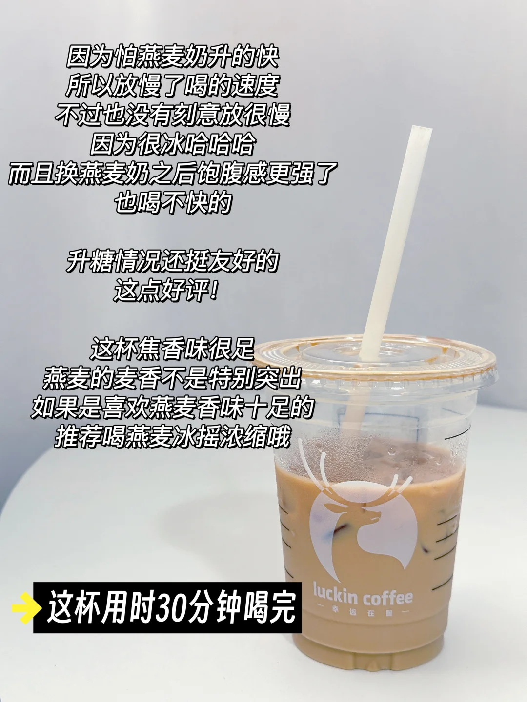 因为怕燕麦奶升的快,所以放慢了喝的速度,不过也没有刻意放很慢,因为很冰哈哈哈,而且换燕麦奶之后饱腹感更强了,也喝不快的[扯脸H]