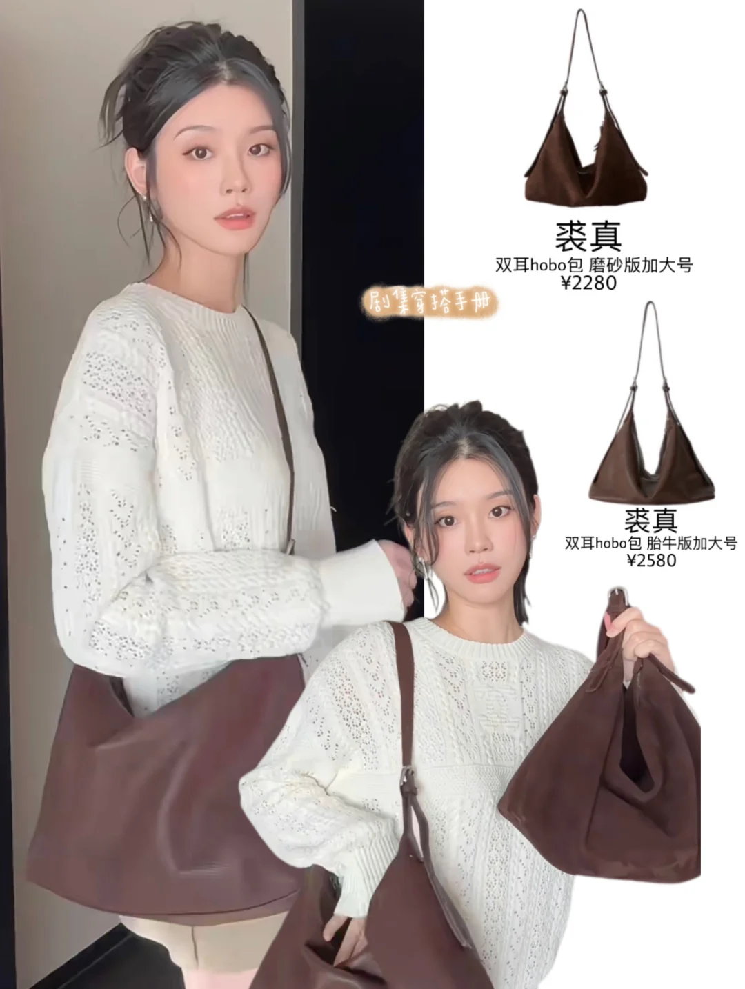 ✨奚梦瑶同款穿搭,超模明的表现力很优越,每套穿搭都被她演绎得很漂亮。 ✨在她的新穿搭中出现了很火的裘真,国产小众包独一份!!而且看出这只hobo种草到她心巴上了,高级丝绒感的磨砂皮加上hobo的松弛随性真的太好看了!我都想到了行走在巴黎街头落日黄昏的慵懒浪漫!另一个大容量保龄球包,元宝这个名字就很福气感了,不得不说,小明真的很会挑 原图来源于奚梦瑶