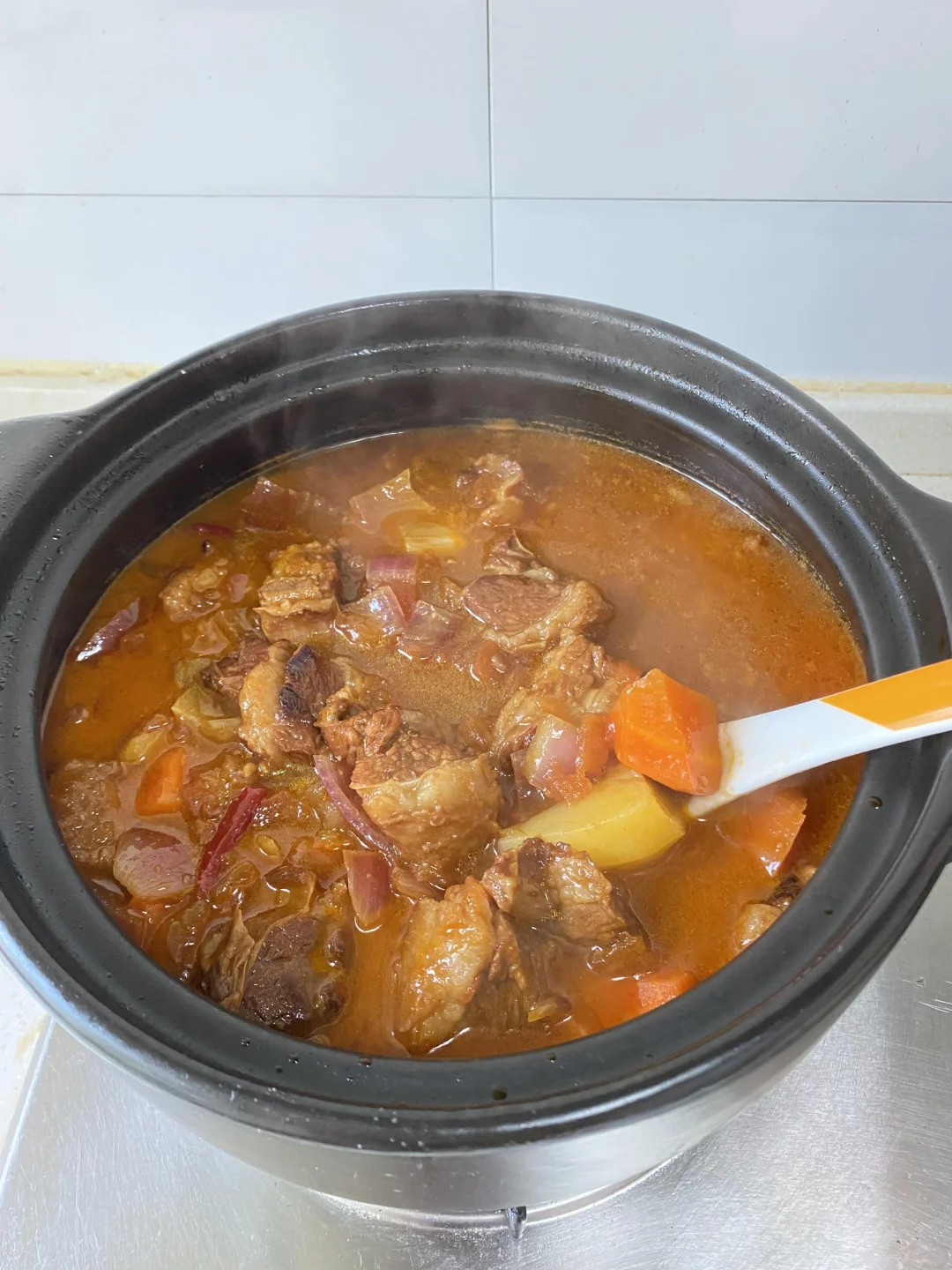 超级好吃下饭的番茄土豆炖牛肋条!!继白切牛肋条之后又一个香迷糊的吃法。汤汁浓郁,牛肋条软烂入味,拌着米饭吃太香了!!