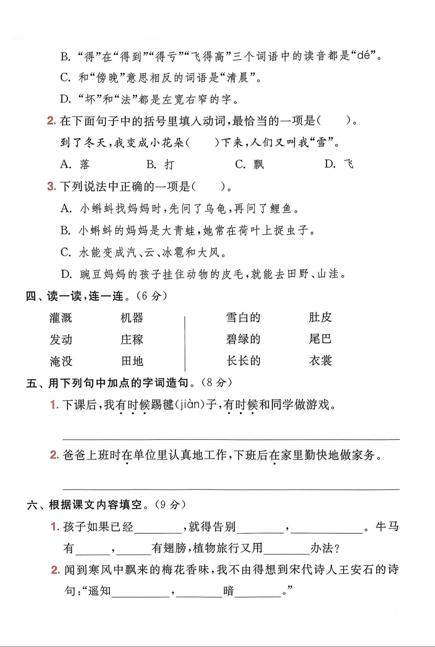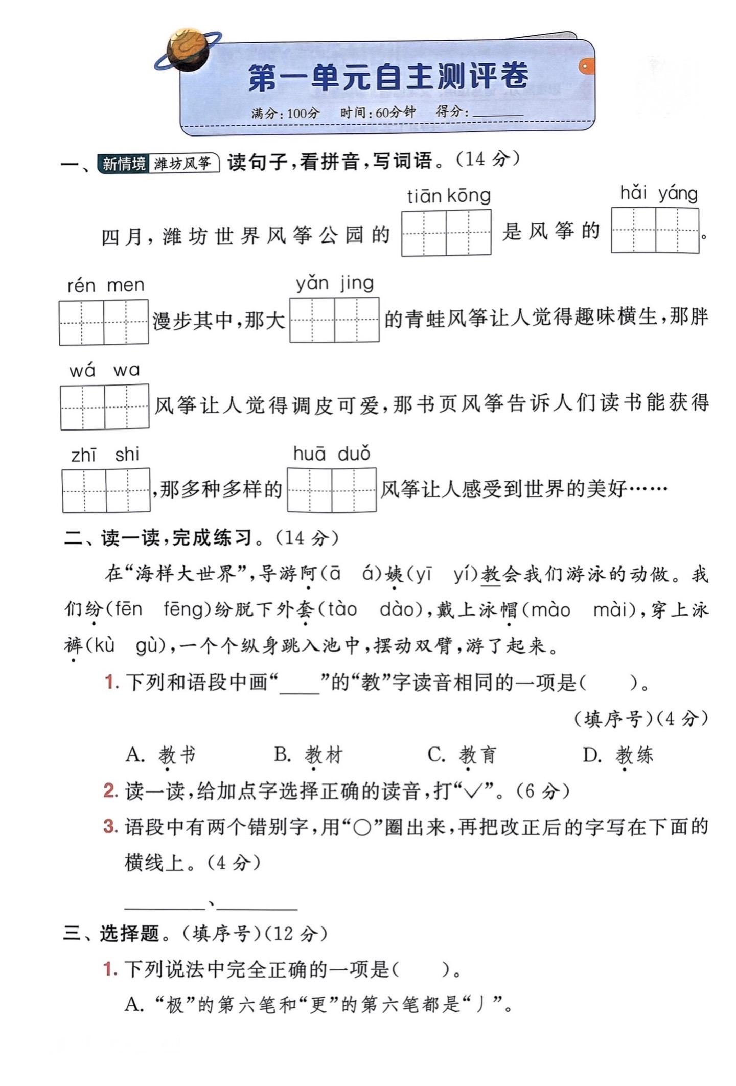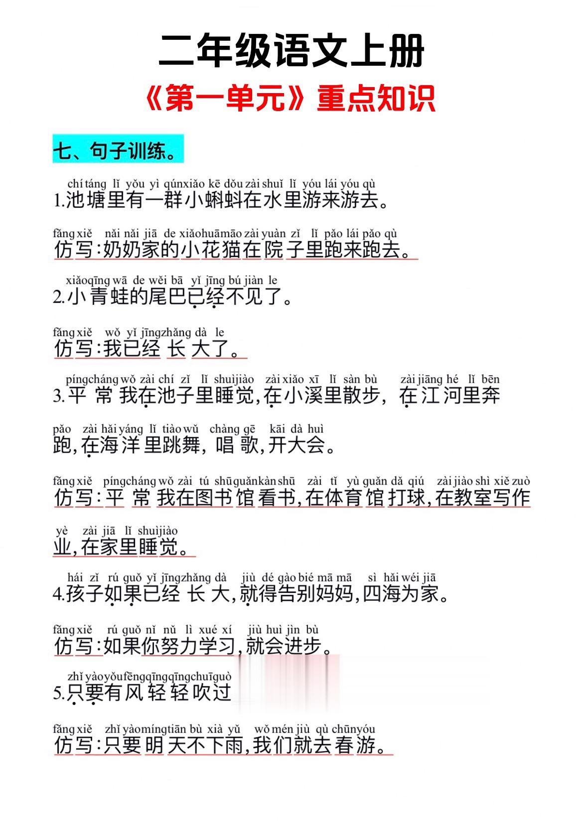 二上 第一单元知识总结。后面有单元测试,给孩子练一练。这套测试是稍稍...