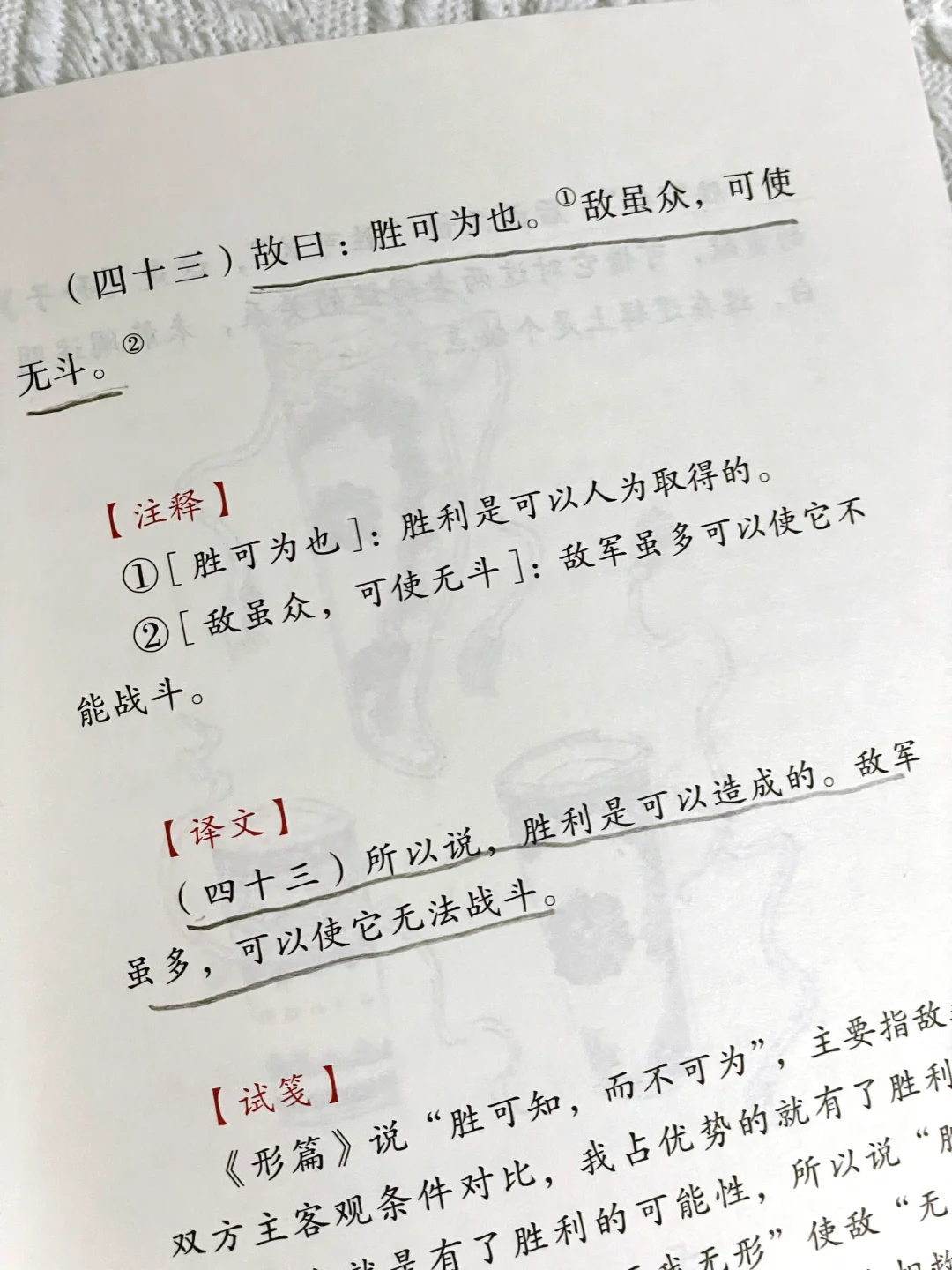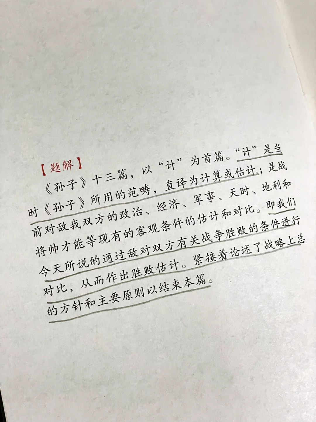 💫说到这,读经典选译本很重要。我选的是郭化若老师的讲解,郭化若将/军是当代著名军事家,书中他不但为《孙子兵法》全文作了校勘、注释、今译,还撰写了题解及考订、评论文字,既有较高的学术水平,又浅显易懂。