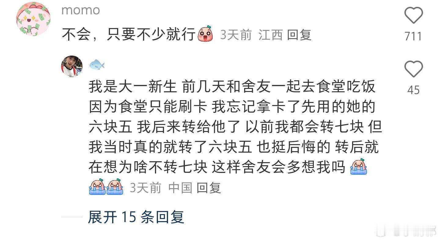我是个i人,不是很富裕,平时买东西都精打细算的,宿舍买公用的东西都是另外几个人买的,然后把价格发群里,我们转账。