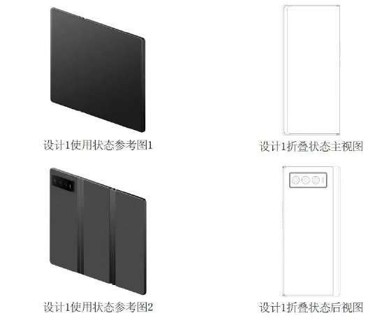 信息显示,小米于2022年12月21日提交了该设计专利,展示了两种设计方案,专利权人为北京小米移动软件有限公司。此外,专利草图显示,小米三折叠手机背面采用水平放置的摄像头方案,水平放置了3个摄像头,并配有一个LED闪光灯。(罗宁)