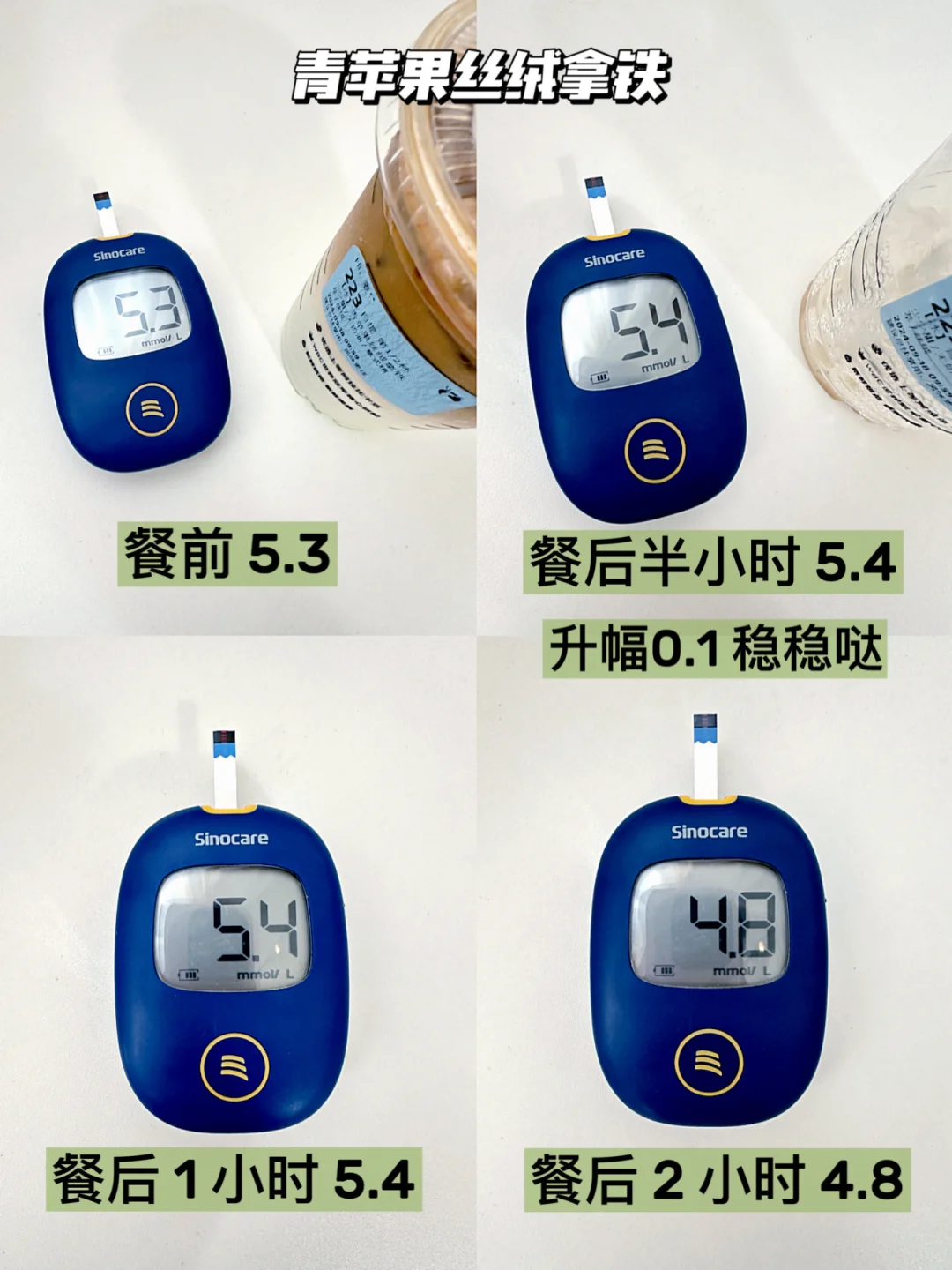 瑞幸青苹果丝绒拿铁&青苹果小铁升糖测试来咯[鼓掌R][鼓掌R]两杯都是0卡糖,来看看升糖情况如何✔