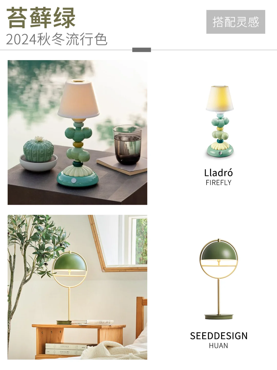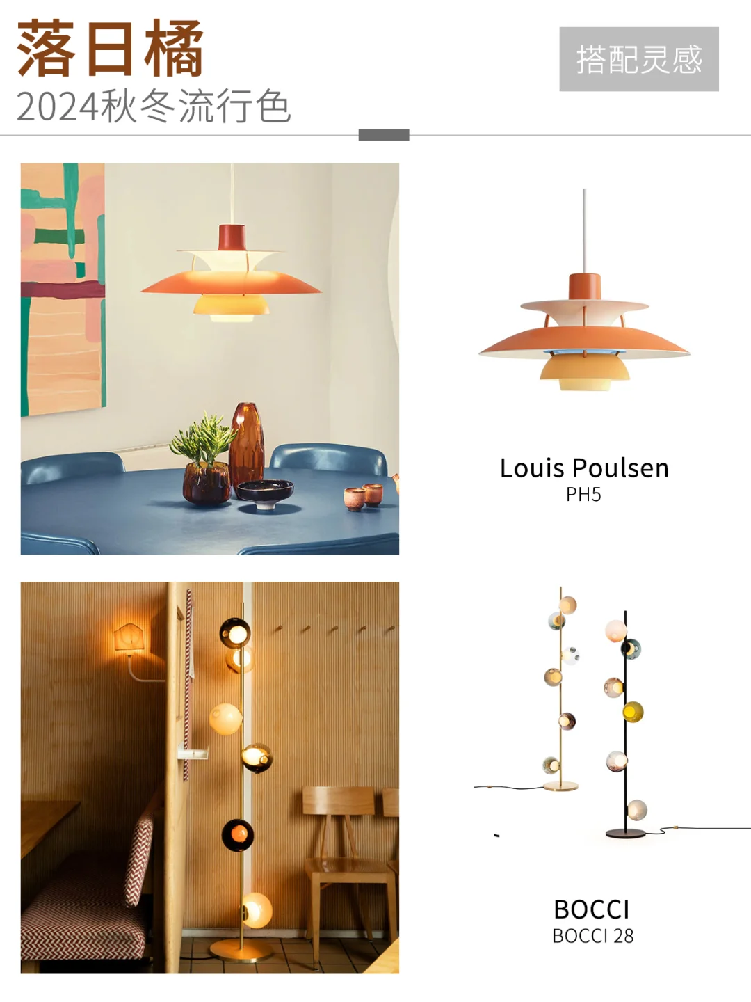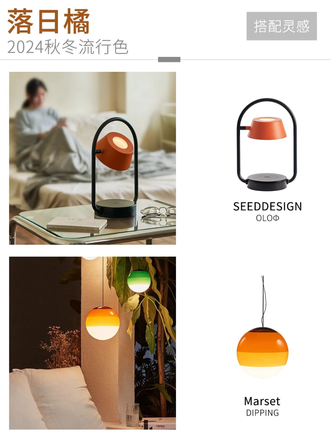 🎨每个季节都有着不同的流行色,今年的色彩都给人一种温暖又不张扬的感觉。我们根据4款流行色,选了一些适合秋冬和增加氛围的灯,🖼️如图2-9。