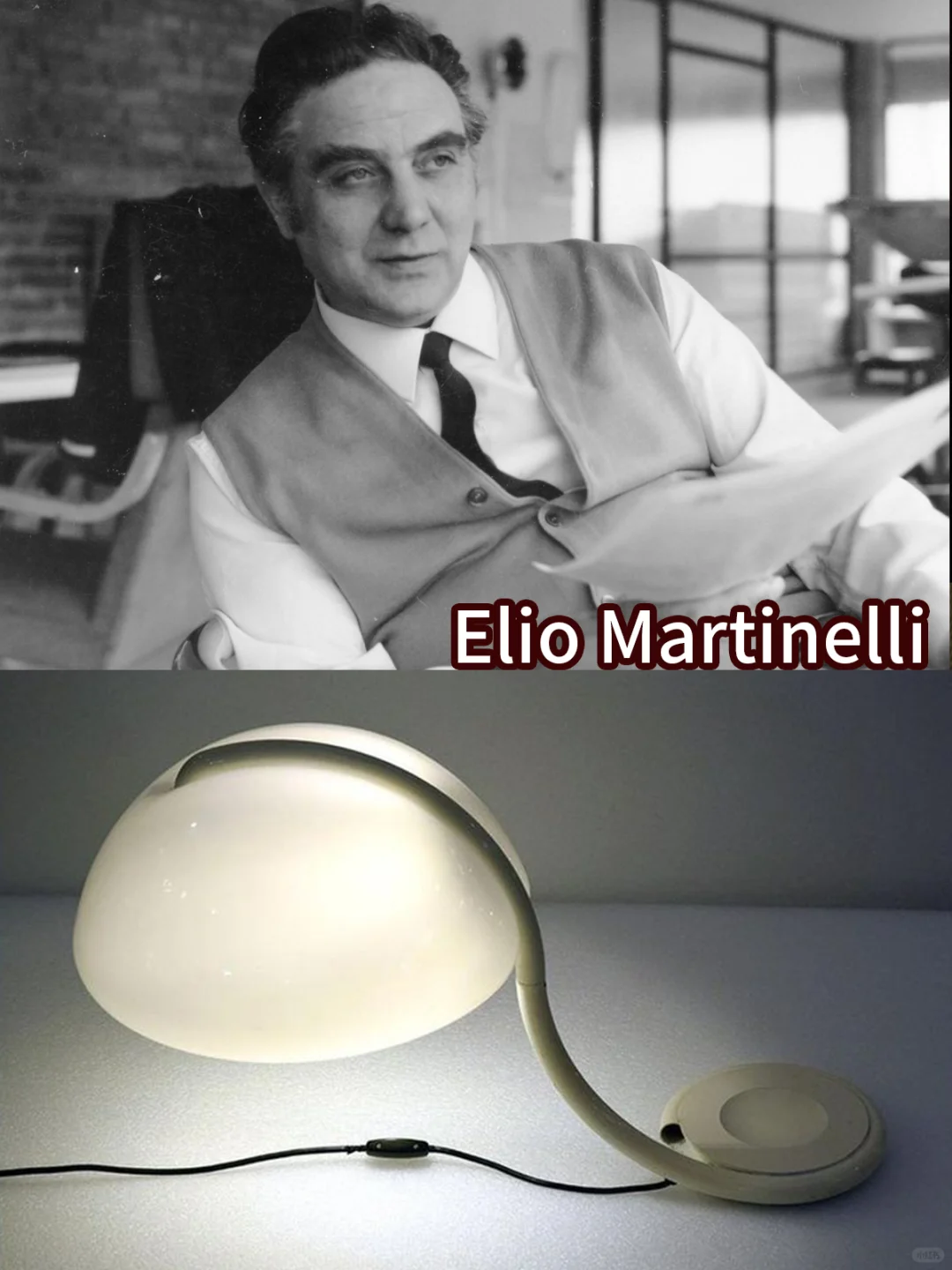💫Elio Martinelli在1960年代设计的复古白色Serpente落地灯,有趣的灵感、简单却有力的几何线条,有着当时标志性的太空感浪漫。如今你还能在许多中古店内,看到这盏灯的二手版本。
