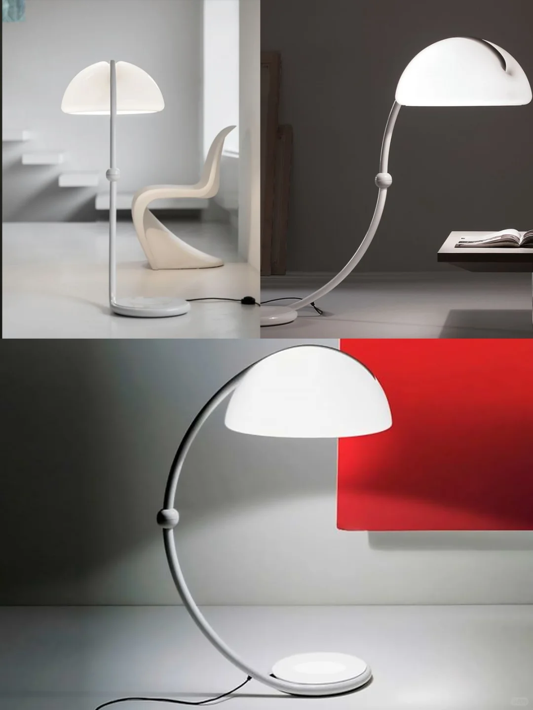 🔘Serpente有台灯和落地灯两种款式。即使经过了60年的沉淀,你依然能看到家居博主会把Serpente摆在客厅的C位。