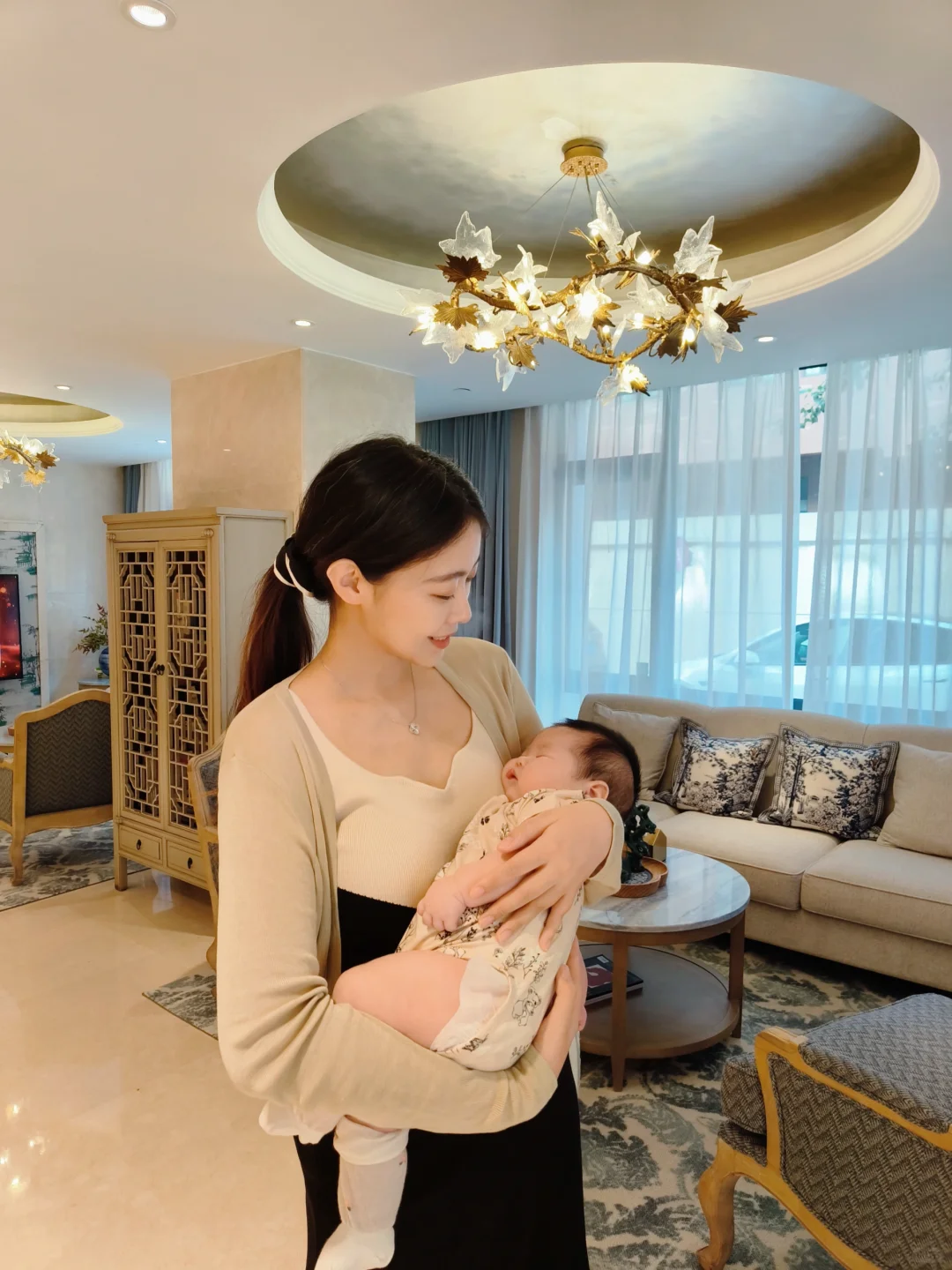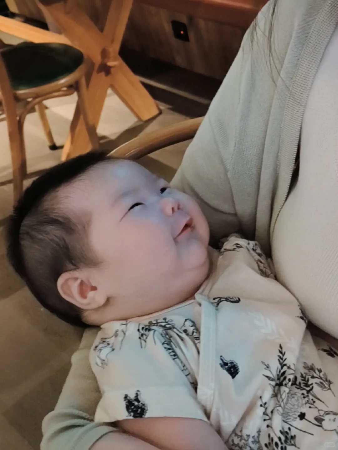 下午带年年回会所游泳、洗澡、吃NeiNei之后,陪妈妈去屯儿里吃饭,一路安睡,醒来之后新奇的各处看,超乖的宝贝!