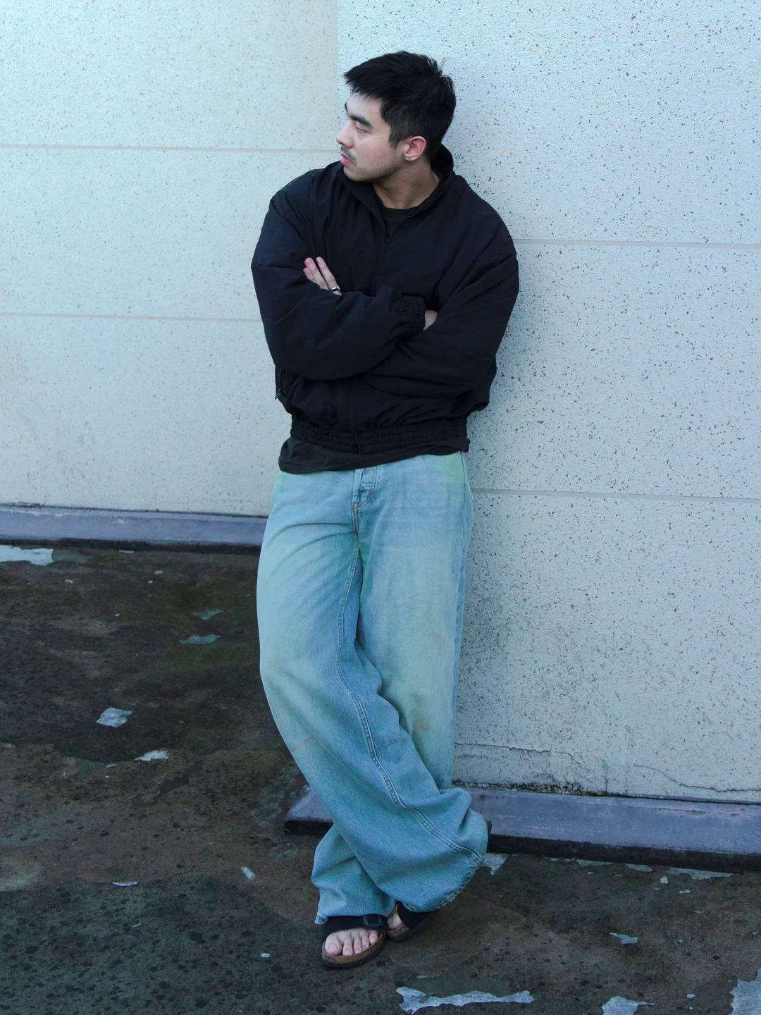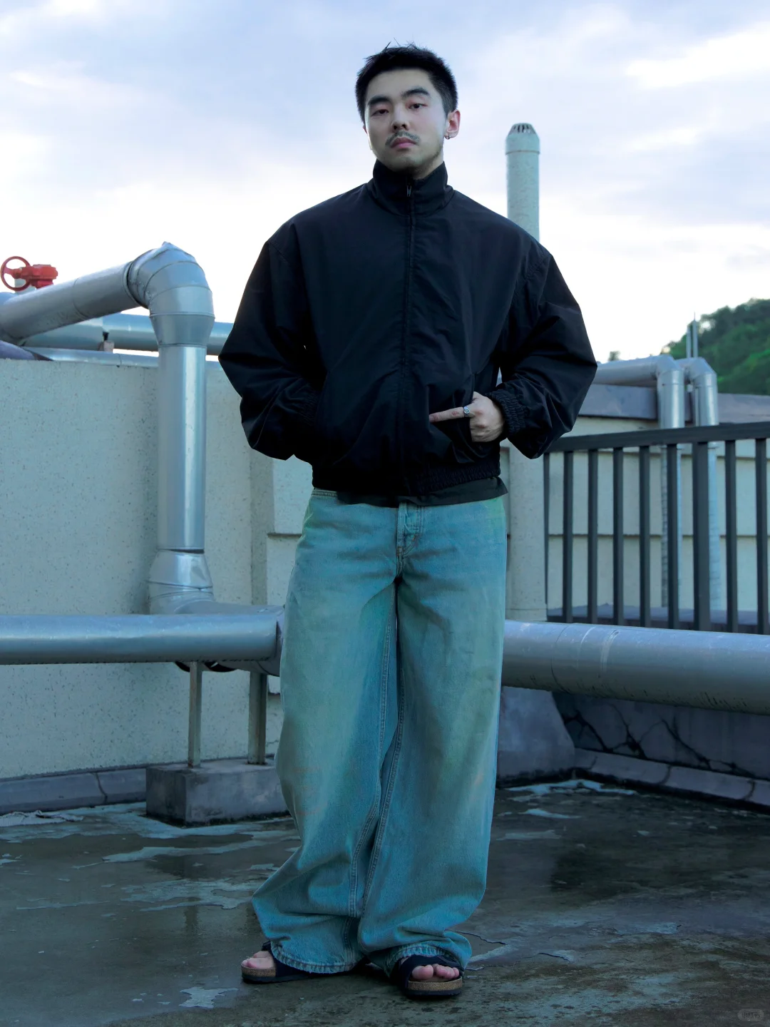 台风天,收到新衣服,不修边幅也要拍几张。果然我还是最喜欢牛仔裤配黑夹克,舒服。