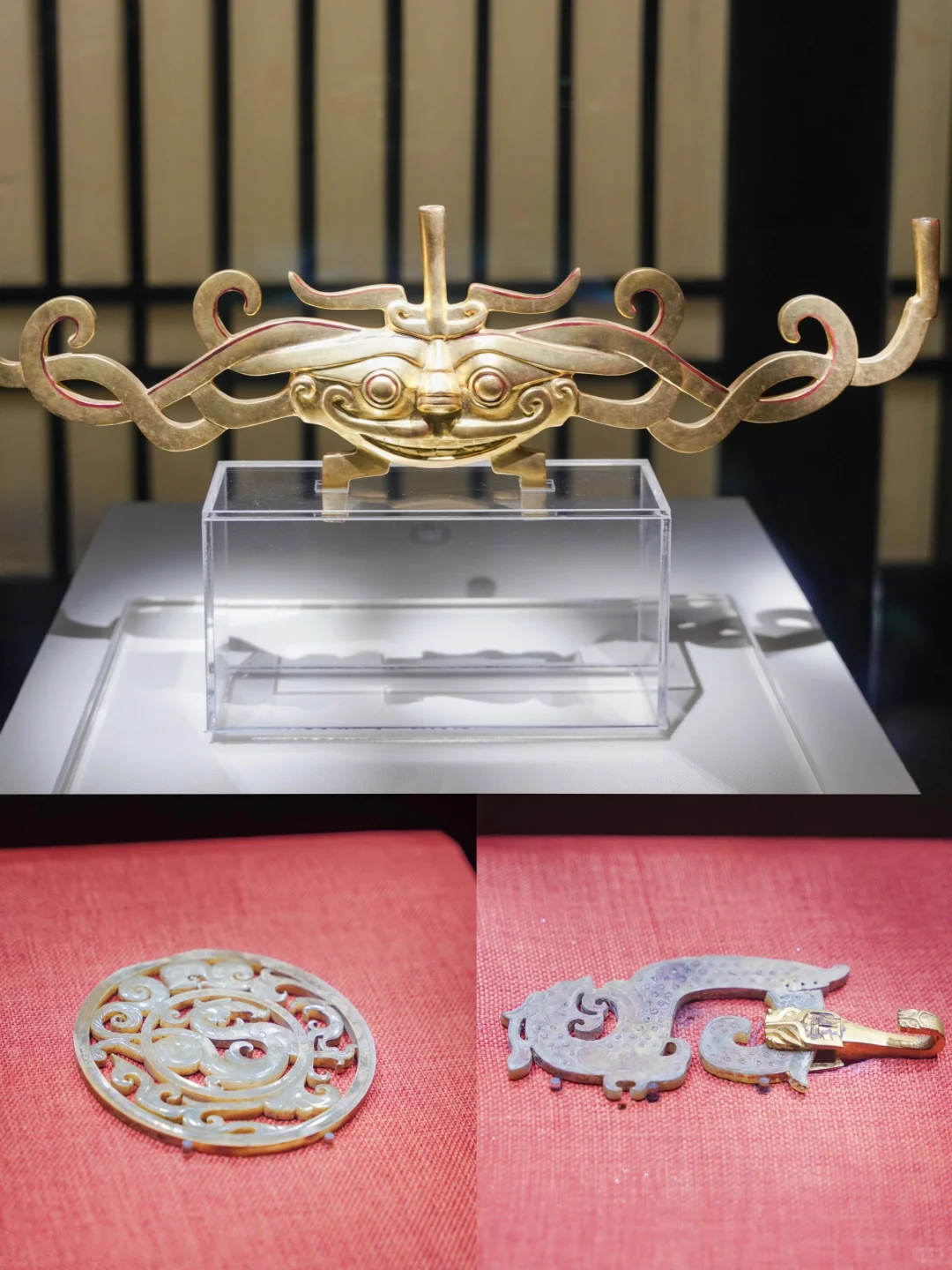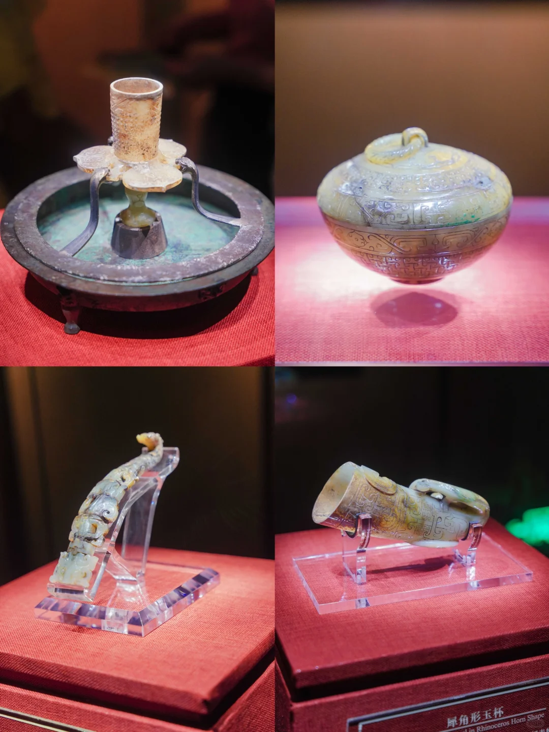 🎐龙凤纹重环玉佩(馆徽)青玉角杯 、铜承盘高足杯🍹西汉铜屏风构件🚪、玉配饰🪄、