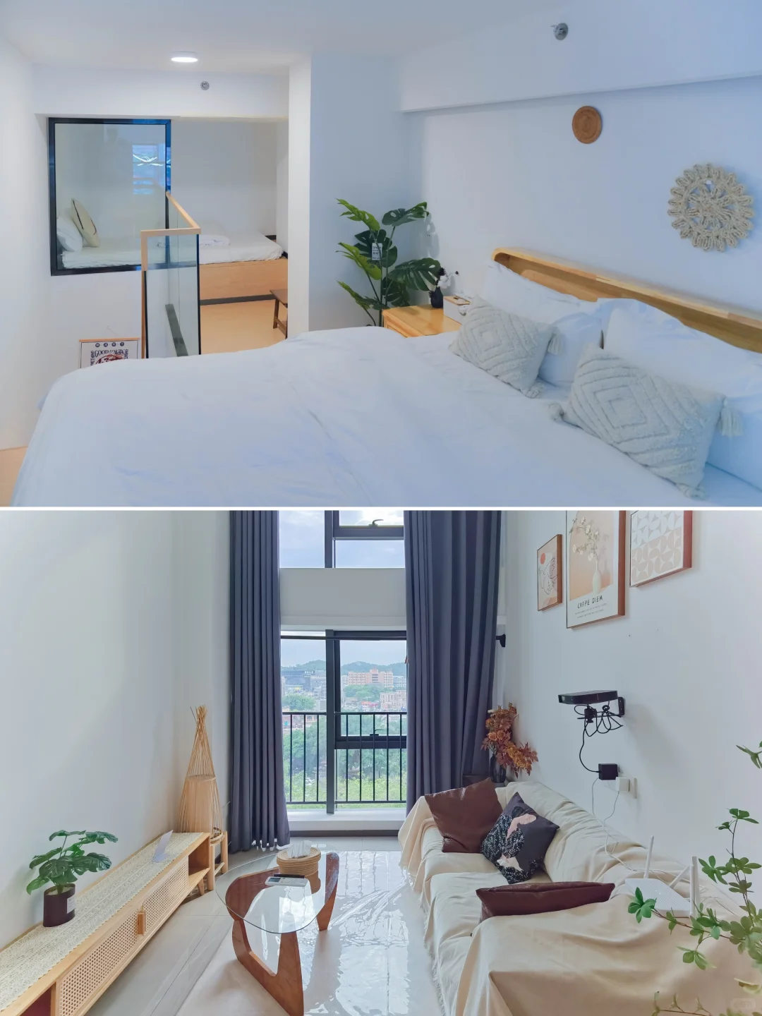 👍公寓均为loft复式的设计,每个房间都是不同的风格,波西米亚风,复古北欧风,奶油风等,房间布置温馨,让人在旅途中也能感受到家的温暖