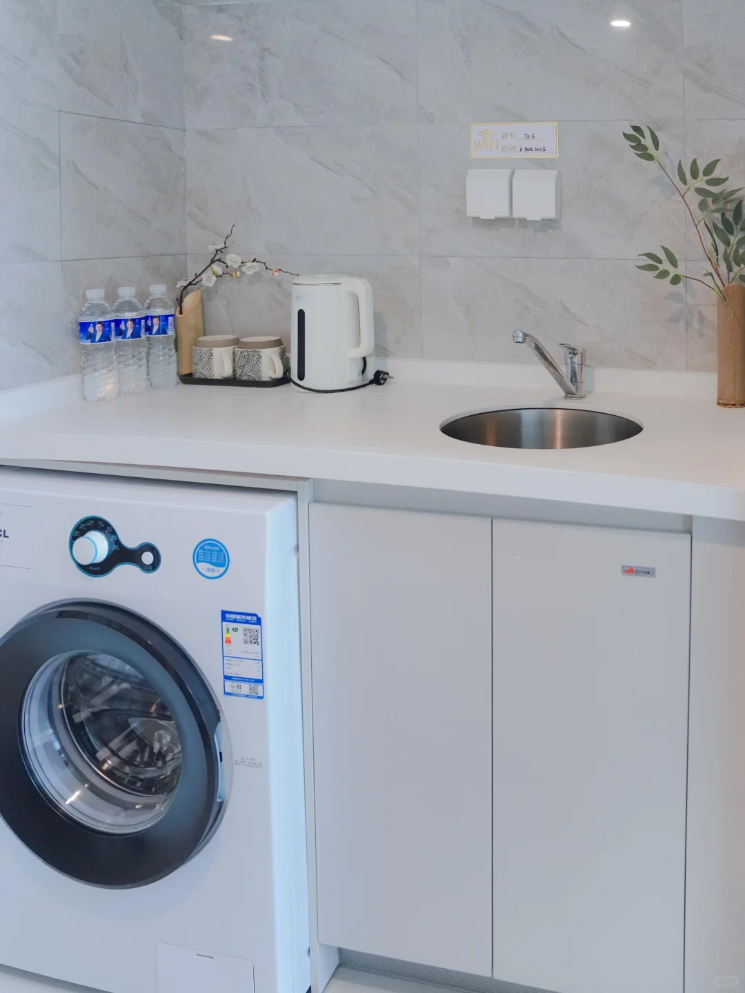🏠公寓配套设施齐全:一次性马桶垫,一次性杯子,洗衣液,洗衣机,冰箱等等,高清投影均有配备。