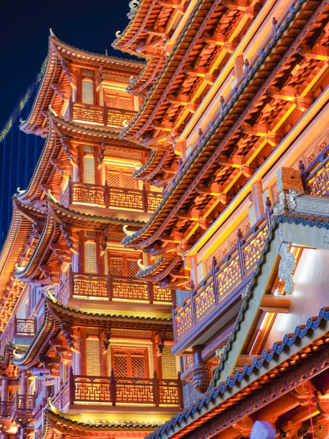 给人以极强的视觉震撼,成为了网红拍照打卡地❗️ 🌟来大佛寺,不仅是一次历史的穿越,更是一次心灵的洗礼。 🚇【交通】地铁公园前站D口或北京路站B口 🎫【门票】免费开放,让你无负担地探索这座古寺。 🕗【开放时间】8:00~19:30,夜晚19:30至21:00亮灯后的灯光秀才是重头戏 🏛【大佛寺结构】 第1层:寺庙展览介绍 第2层:素食餐厅 第3层:静心斋,晚上开放 第4层:图书馆,晚上开放 第5层:寺庙办公室,不对外
