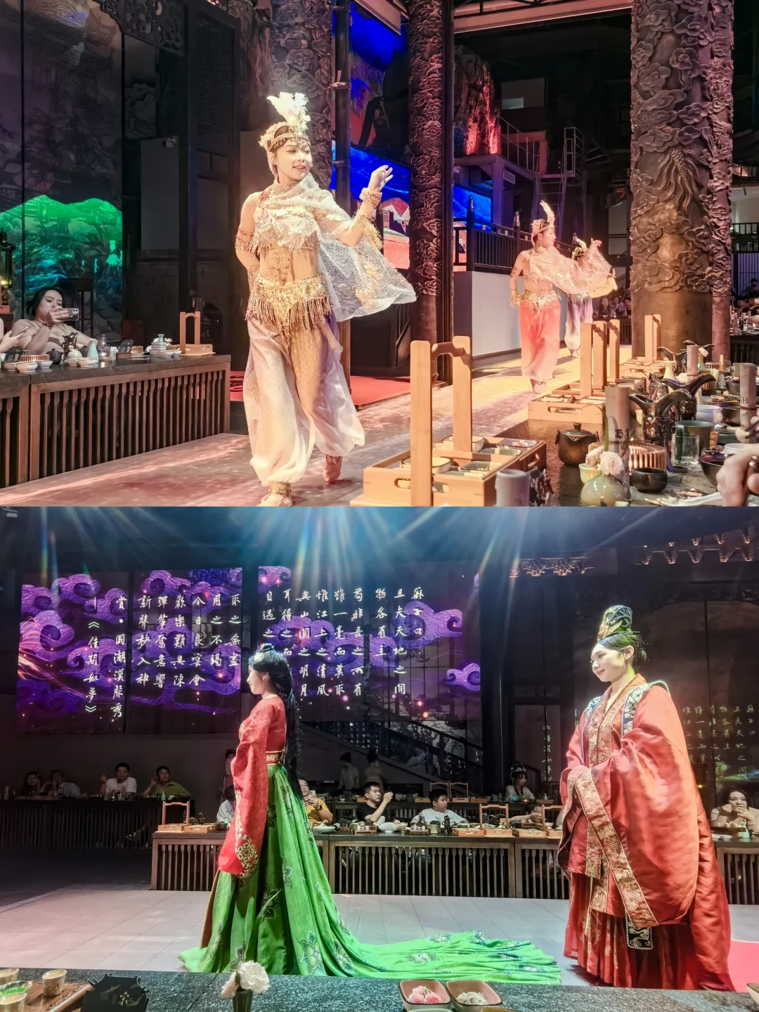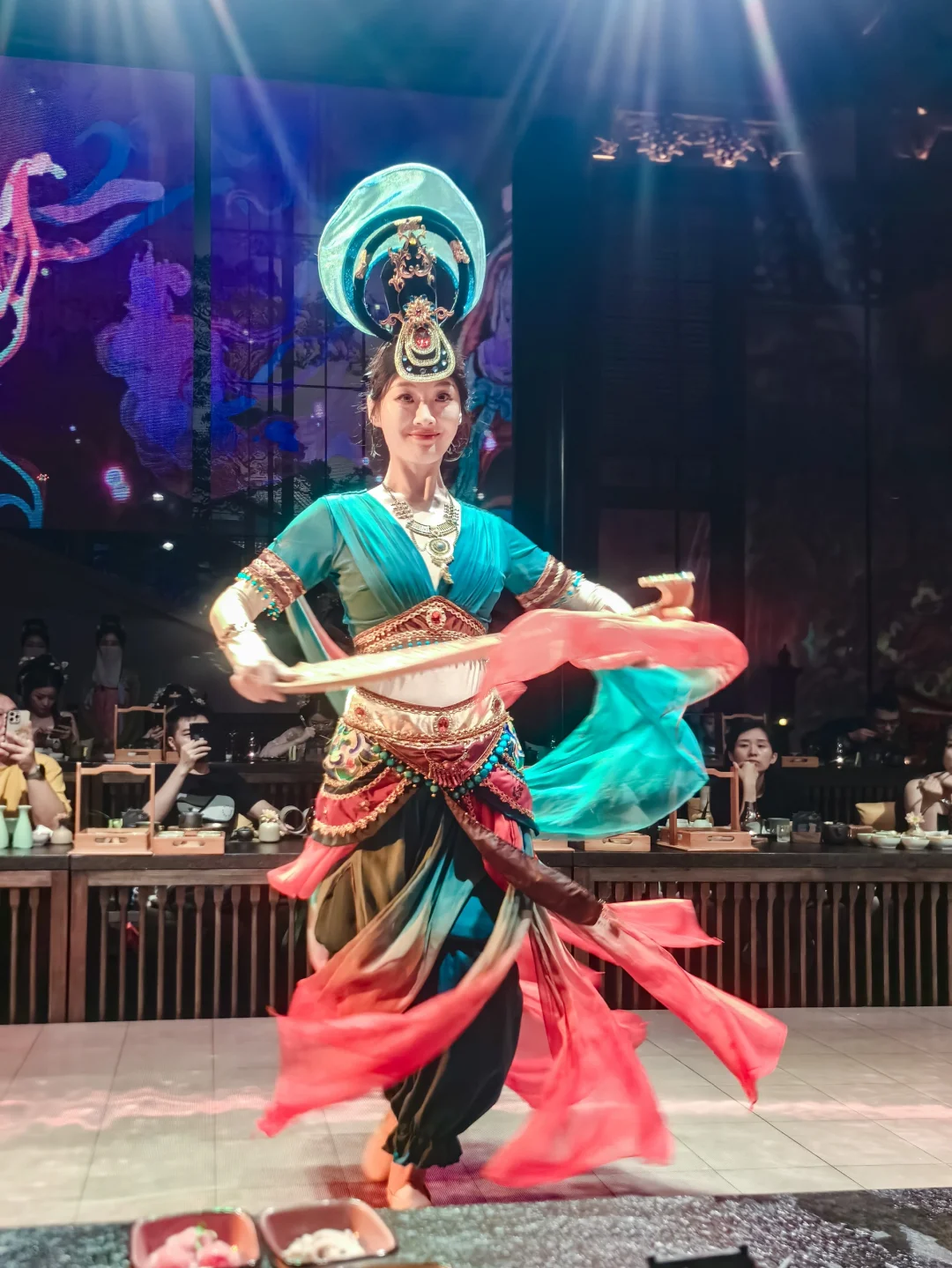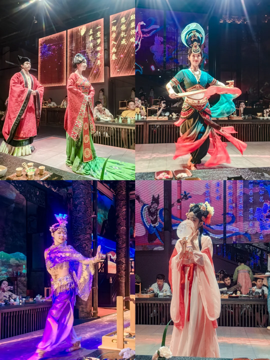 享受美食的同时,还可以欣赏汉唐宋的舞台表演,舞者踏着鼓点,还原经典的汉代乐舞💃🏻