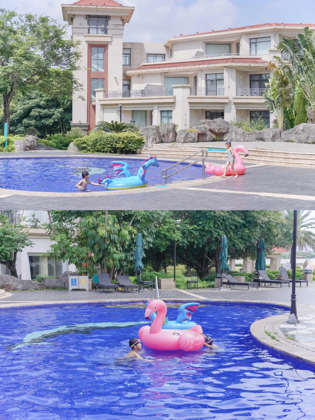 很出片了❗️有适合低幼儿童的儿童池,有提供泳圈🛟旁边也有专业人员