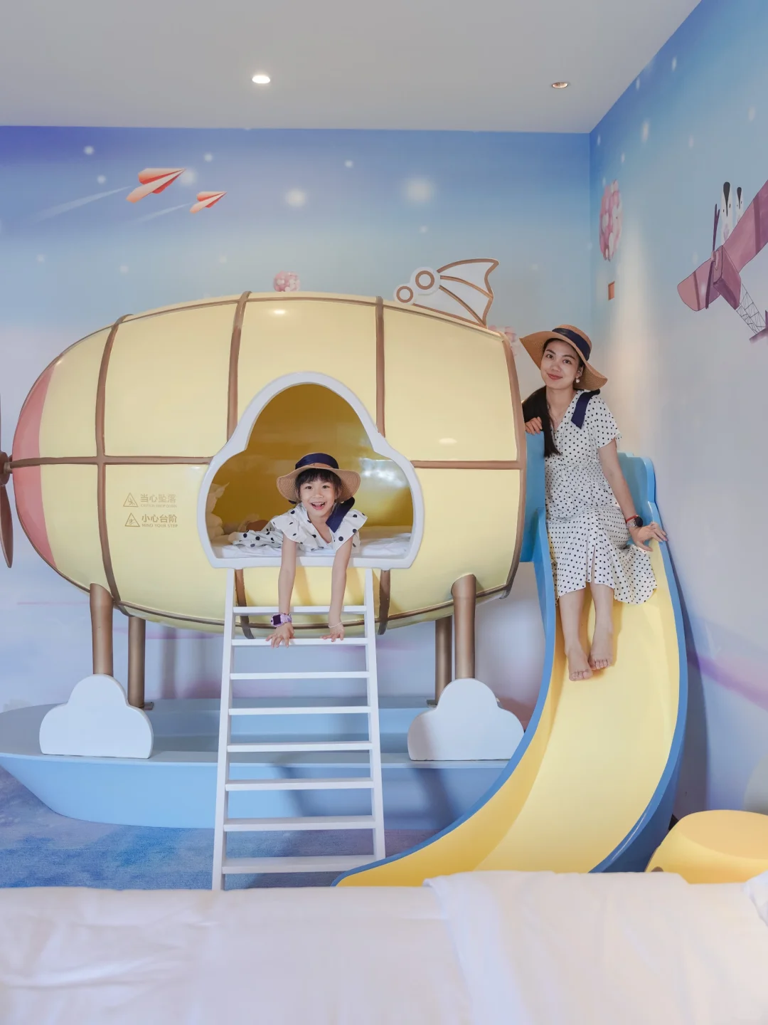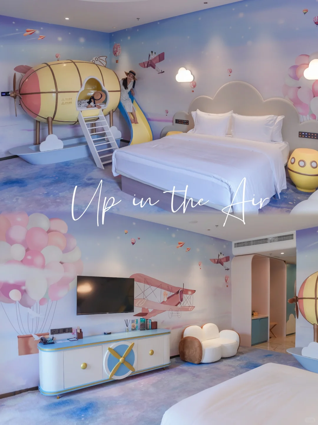 可以睡在热气球里,在蔚蓝的天空中飞翔❗️热气球连接着滑梯,一进去就玩个不停,房间里的儿童设施配备齐全,儿童浴袍,儿童牙刷,儿童拖鞋配备完整。