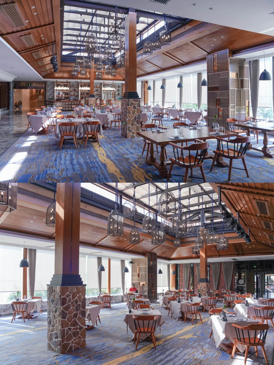 早餐我们在五楼的海景餐厅,中餐西餐都有,满足你的胃味蕾,一边欣赏着美丽的海景,一边享受着丰富的早餐。享用后可以到酒店后花园走走,看看10万㎡的景观园林。