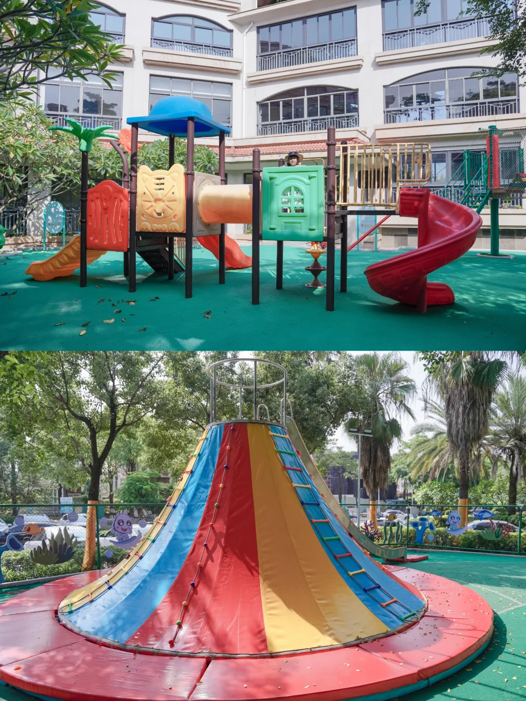 👉🏻2000㎡的户外儿童乐园,大蹦床,攀岩墙,彩虹🌈攀爬架,沙坑,小月龄玩的滑梯