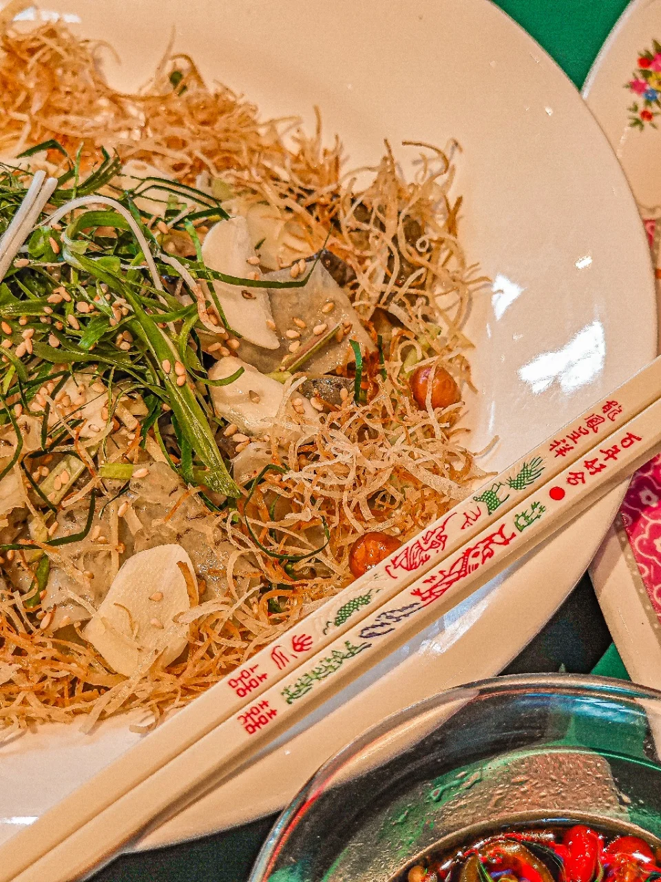 晶莹剔透的鱼皮,搭配着五彩斑斓的蔬菜丝和秘制酱料,轻轻一拌,酸、甜、辣、鲜在口中交织绽放,是夏日里的一抹清新,让人忍不住大呼过瘾!🐟🌈