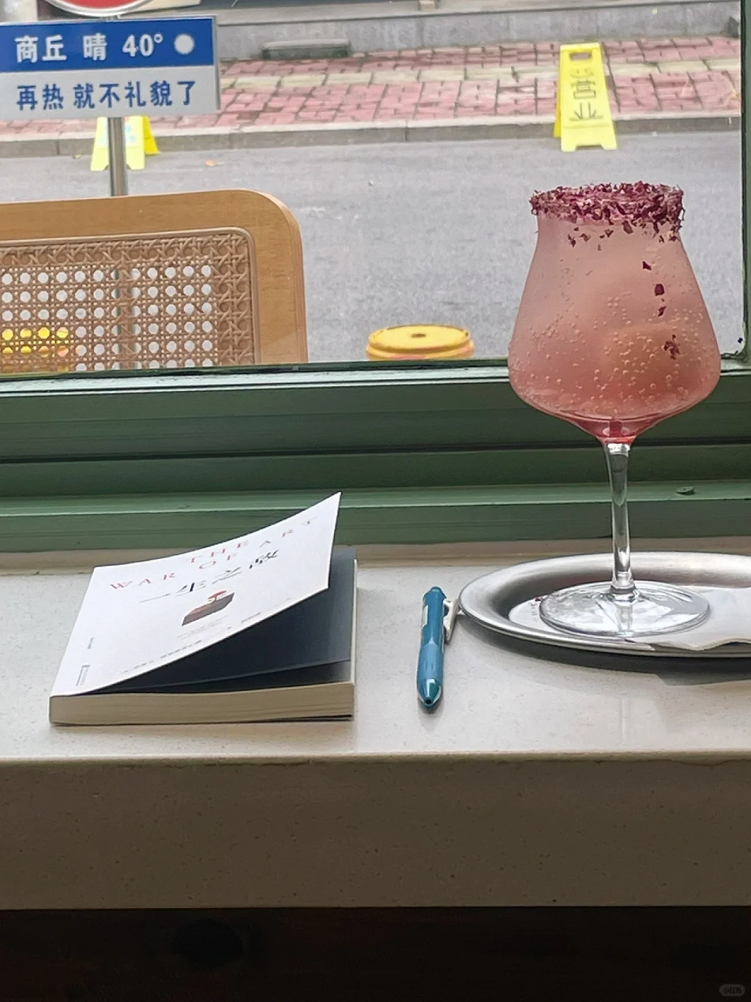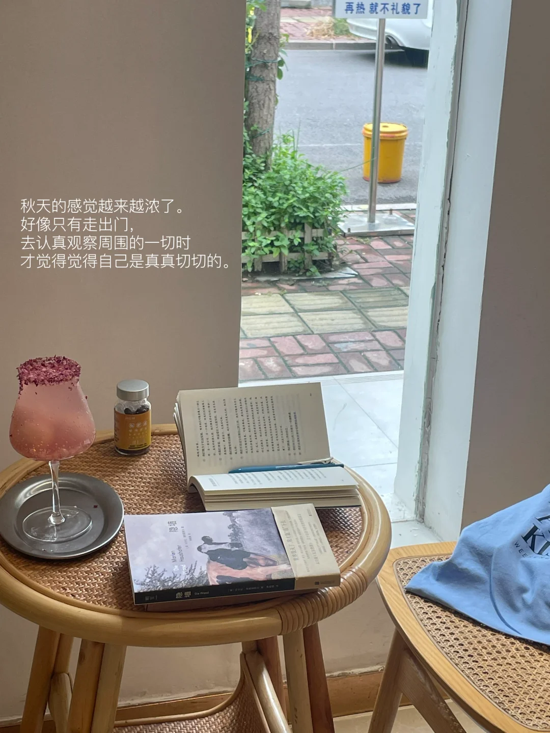 在窗户小憩,喝一杯玫瑰荔枝气泡水,观察气泡慢慢往上蔓延,看树枝上金黄色的小叶子闪烁,风一吹便纷纷落下…