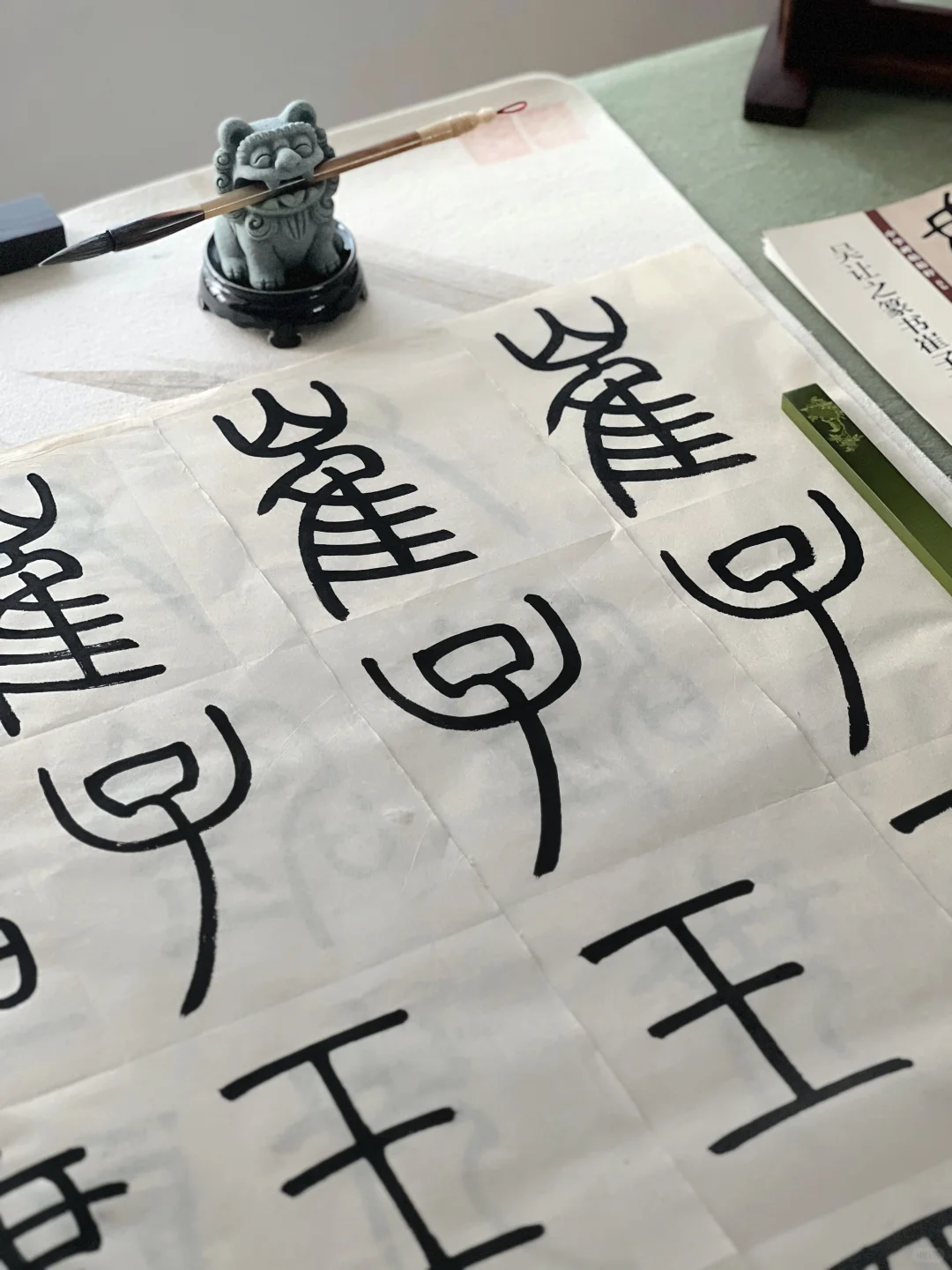 中秋前临六尺邓石如隶书《崔子玉座右铭》后,便开始尝试吴让之的篆书版本。按照原帖布局用四尺对开临了一遍后(24.9.13笔记),看到老师发了放大的临写,于是照着老师的大小开始第二遍。