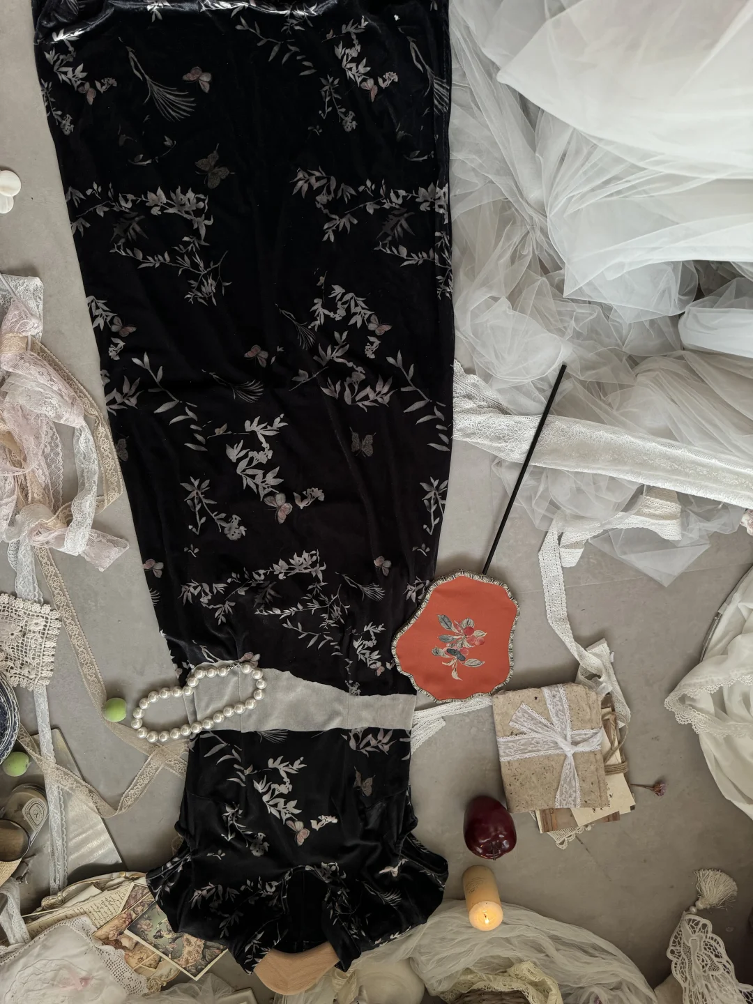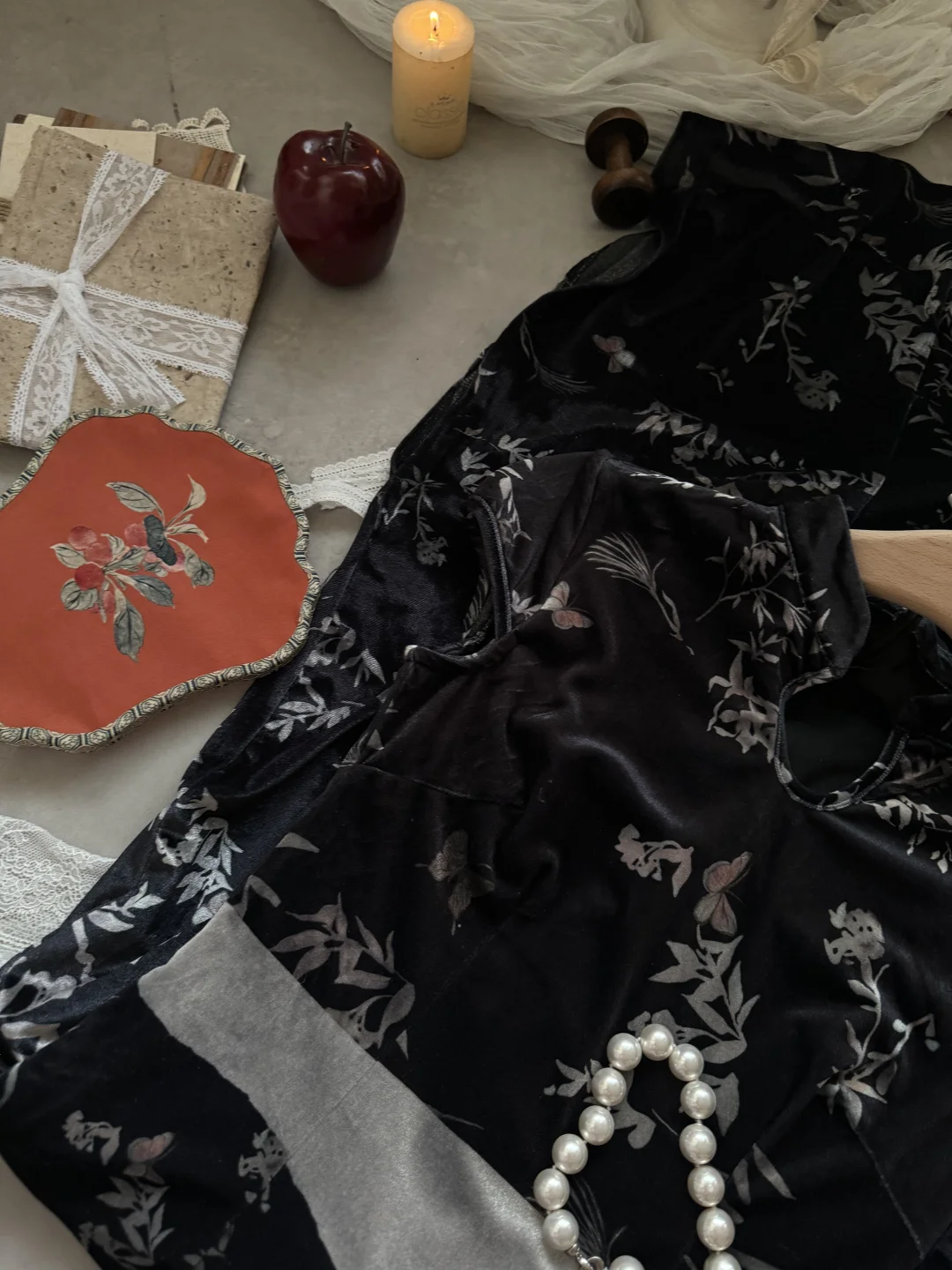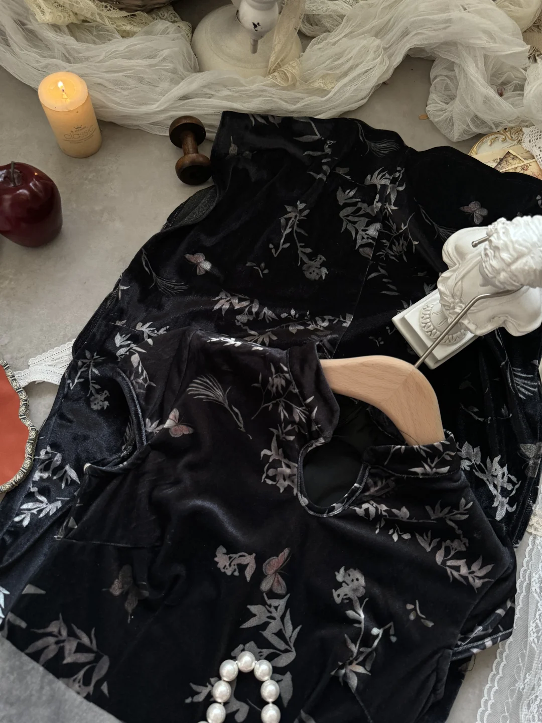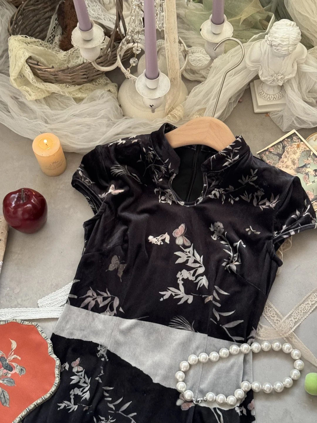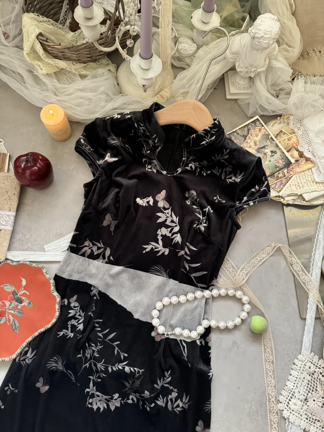 网红品牌尾单!丝绒新中式旗袍 搭配披肩斗篷