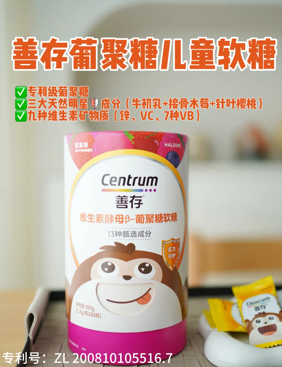 9月开学季到了!神兽准备回笼啦,要是放到去年开学季,我可能会很焦虑,再加上学校里孩子多,很容易中招!但今年可就不一样了,我可是做足了功课!开学第一个月可是对孩子身体保护系统的考验,这就分享我家宝宝月月全勤的秘密武器!跟大家分享一下 像孩子入学环境变化,影响全勤进度,培养强大的保护力很重要, 因为4~10岁处于成长黄金期的小朋友的身体还不够强壮,不足以对抗外面的威胁,又要长身体,就需要小帮手。 所以要补葡聚糖! 我给小朋友准备的是善存葡聚糖儿童软糖,很适合,里面每两颗就加了50mg的专利级葡聚糖(专利号ZL200810105516.7), 是个专利临床验证有效可以少中招少敏敏的尖端成分哦~ 给大家做个小小的科普,葡聚糖不仅可以帮助激活身体保卫军团,让战士们的战斗力提升,并主动出击,一起对付外界的危害。不仅如此,还能让身体的战士们的身手变得更敏捷,主打一个迅雷不及掩耳之势就把坏人消除了,让宝宝身体中的战士们保持并提升战斗状态,孩子总是一返校就中招的原因是:保卫军团对外界攻击的反应太慢。只要保证身体自己的防线时刻警惕就能提前解决潜在的威胁! 更值得一提的是葡聚糖还能让战士们更聪明,能够把更高级危险的坏人们,通过它们的火眼金睛给认出来,并且还能记住它们,并把它们牢牢挡在身体外面!是不是还挺牛? 这款还内含三大天然明星🛡成分~被誉为“天然乳白金”的牛初乳+有着大自然💊箱之称的接骨木莓+富含高量天然VC的针叶樱桃,三者主打一个强强联手,叠加buff~强化体内战士们的活力,同时还能源源不断提供防御能量。还有锌、VC、7种VB,三大明星成分+九种维生素矿物质,13种甄选营养,让宝贝开学返校不当请假户,宝贝的日常营养需求能更好地补充,身体自然一直在线 软糖的形状也是萌萌的猴掌形状,每天往小家伙的书包里面放两个,小家伙评价还很高呢!酸酸甜甜的,不是那种齁甜的哦,QQ弹弹的好好吃~不添加任何人工色素,甜味素和防腐剂,采用麦芽糖醇,不担心宝宝蛀牙!