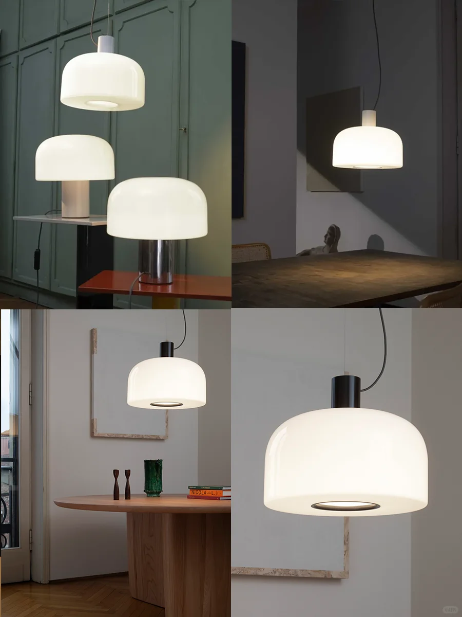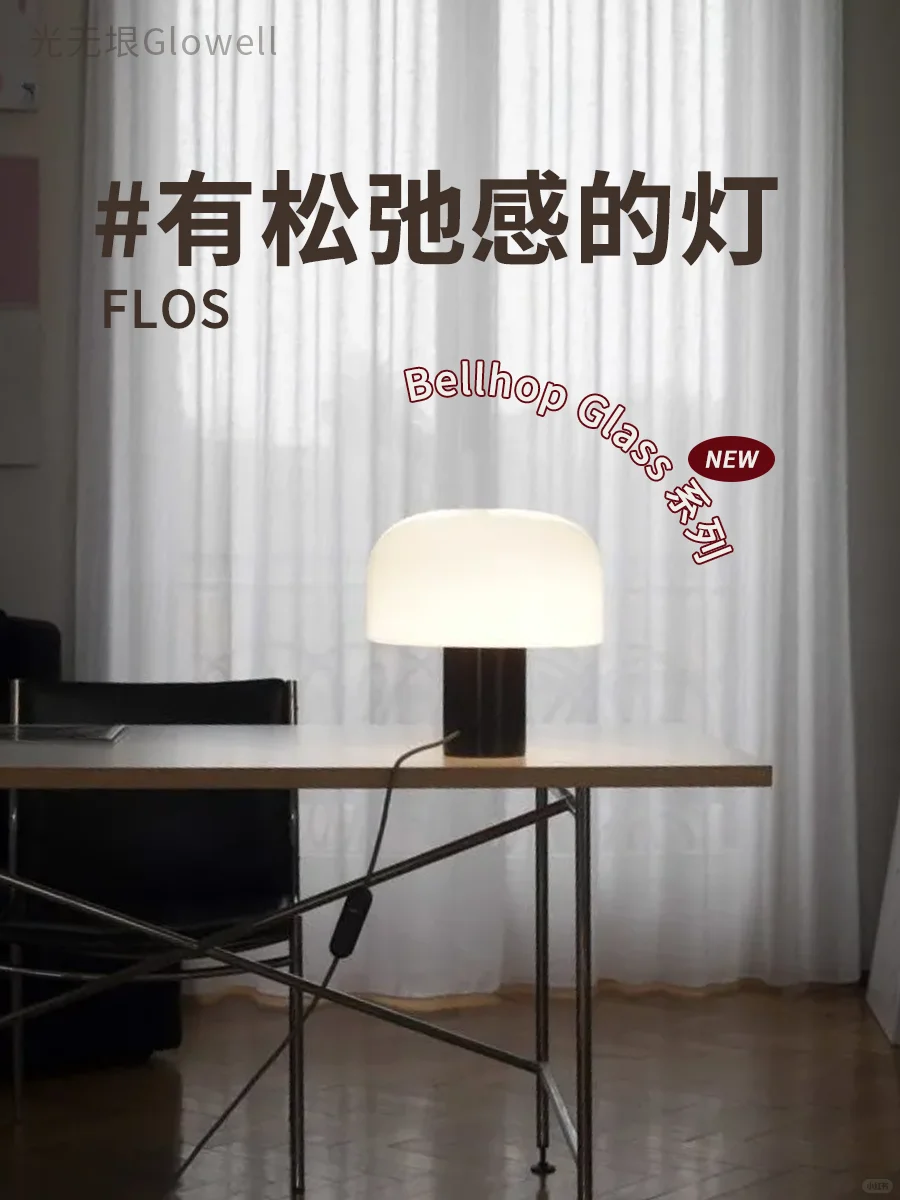 Flos 推出 伦敦设计工作室 Barber Osgerby 设计的 Bellhop Glass,有台灯和吊灯两个版本。摒弃了通常吊灯或台灯都是向上或者向下出光的普通形式,用乳白三层吹制玻璃,使光自由扩散,让房间拥有柔和、松弛的氛围光芬。