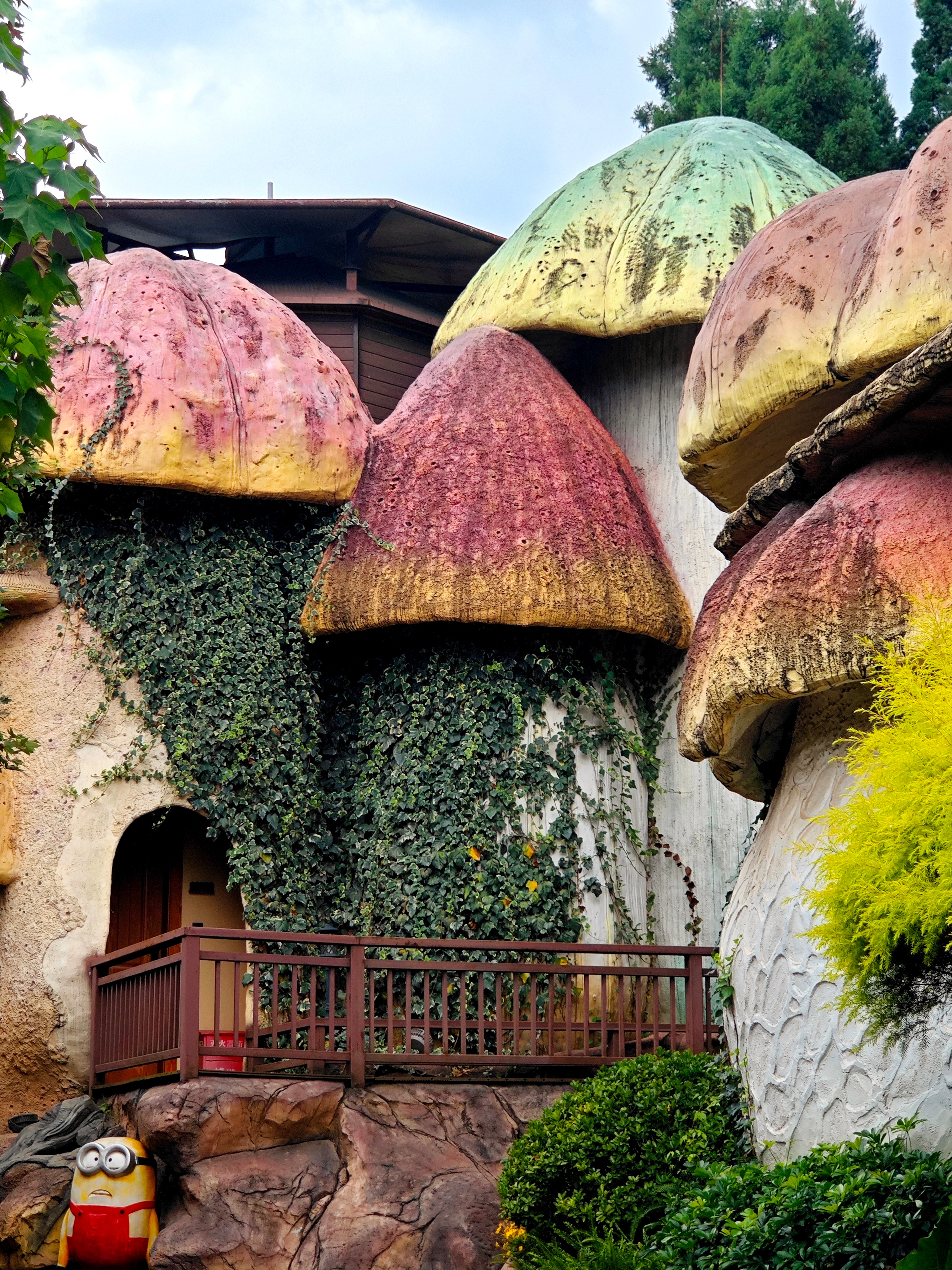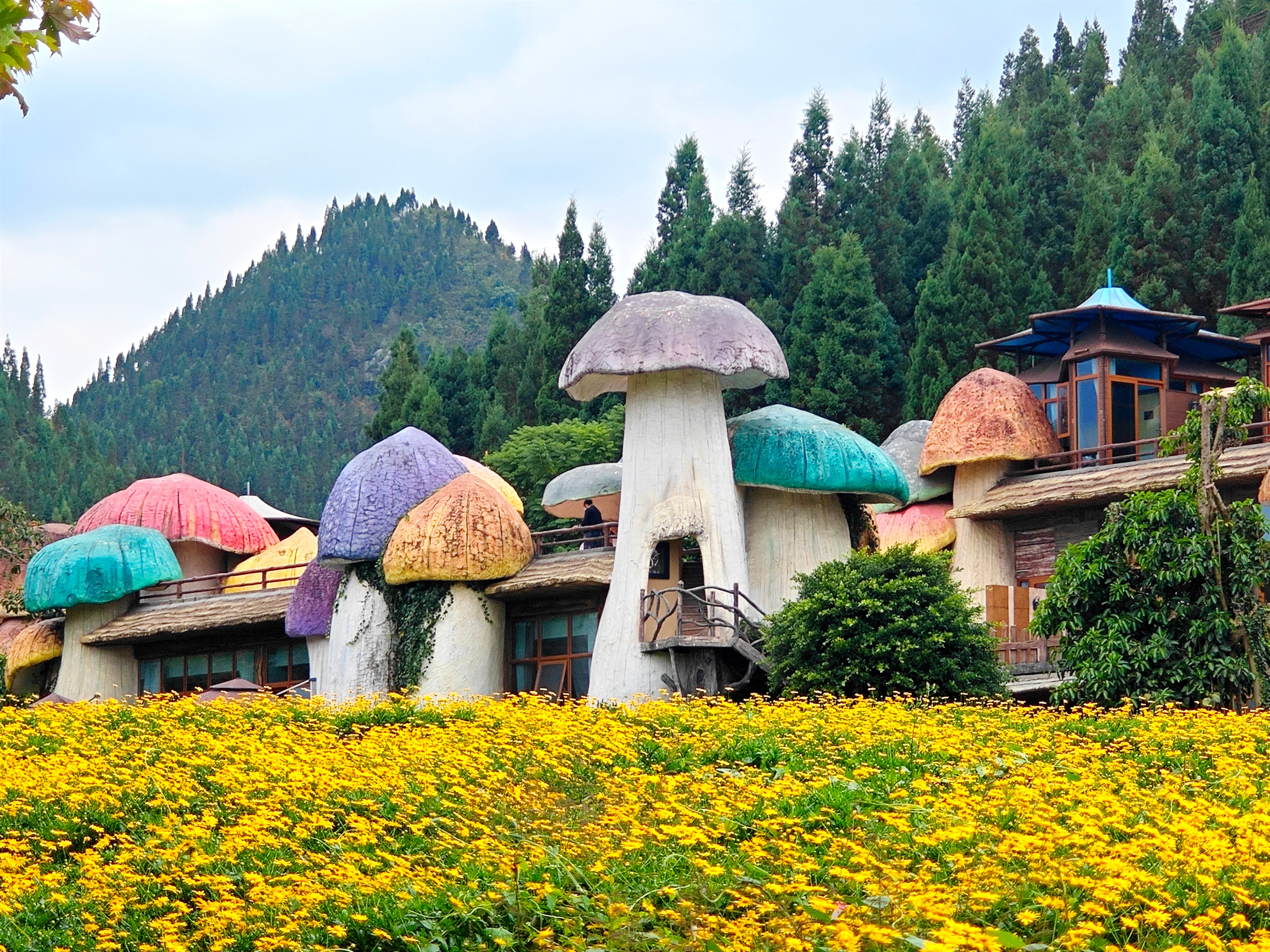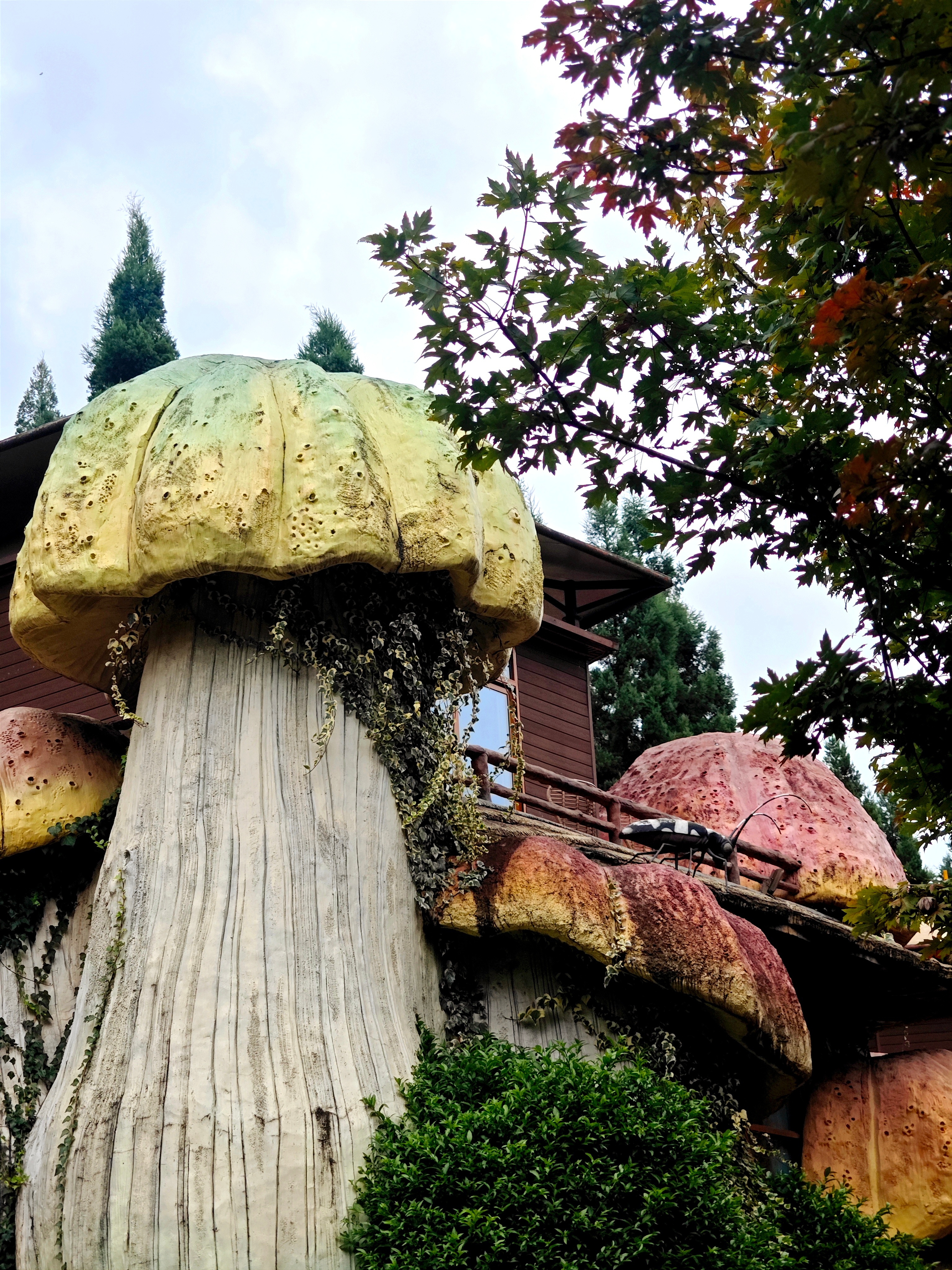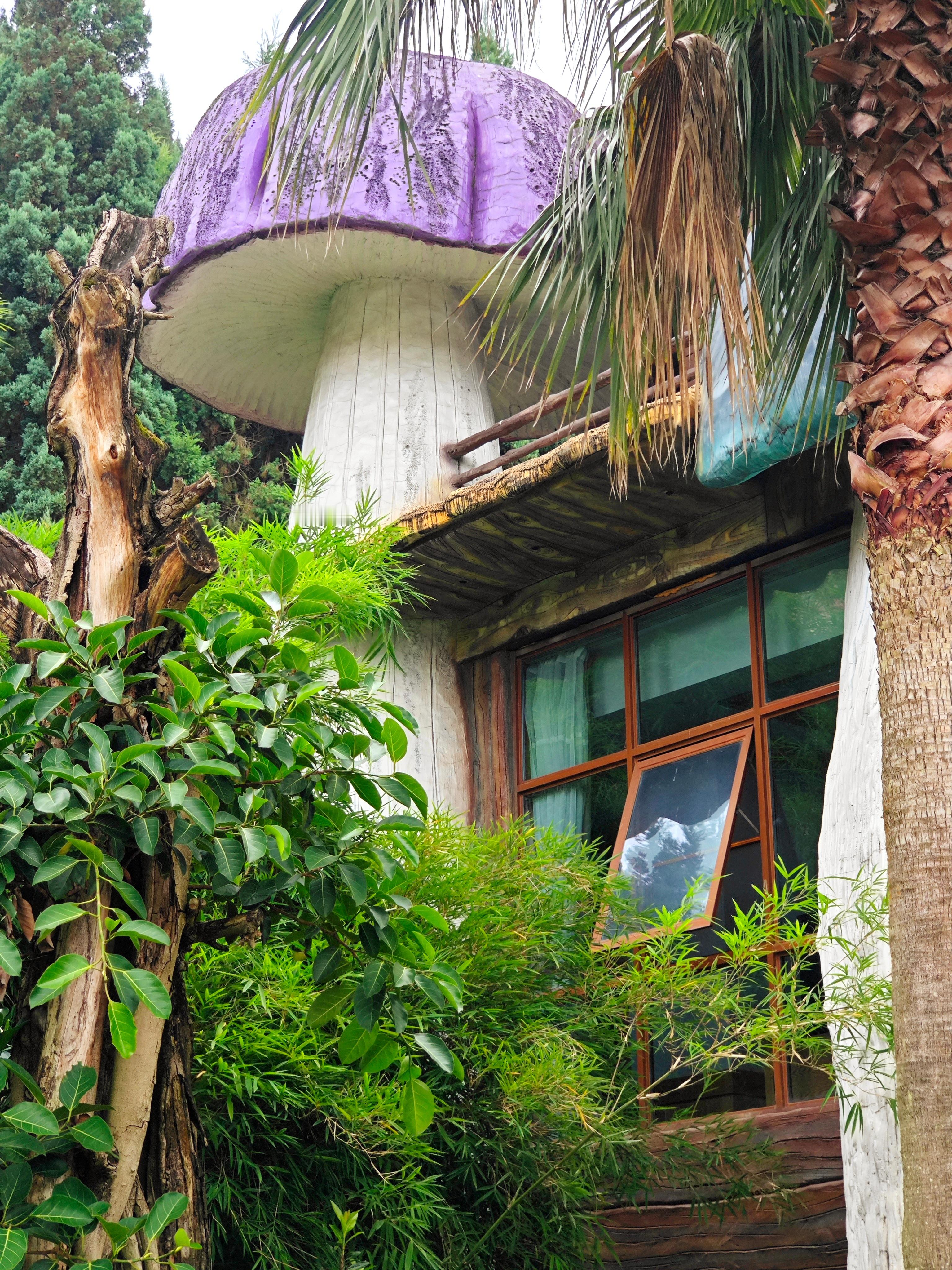 蘑菇野奢酒店的外观设计别具一格,灵感源于野生菌类,五彩斑斓的造型仿佛一朵朵真实的蘑菇在山间肆意生长,充满童趣和创意。