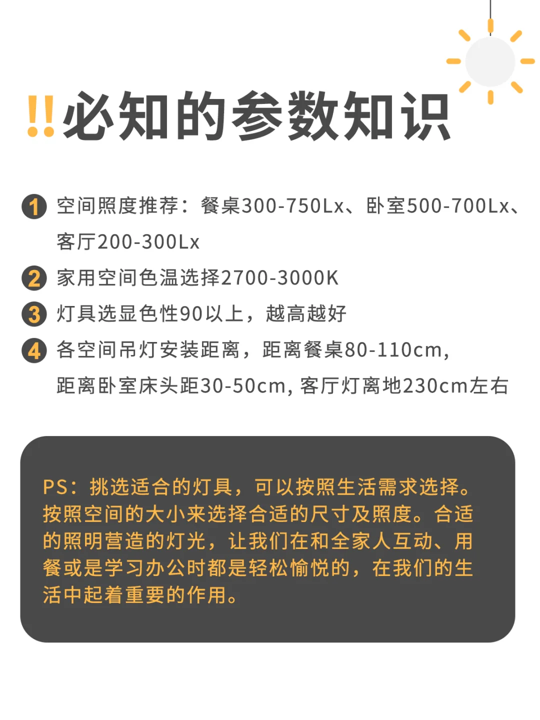 ✅PS:挑选适合的灯具,可以按照生活需求选择。按照空间的大小来选择合适的尺寸及照度。合适的照明营造的灯光,让我们在和全家人互动、用餐或是学习办公时都是轻松愉悦的,在我们的生活中起着重要的作用。