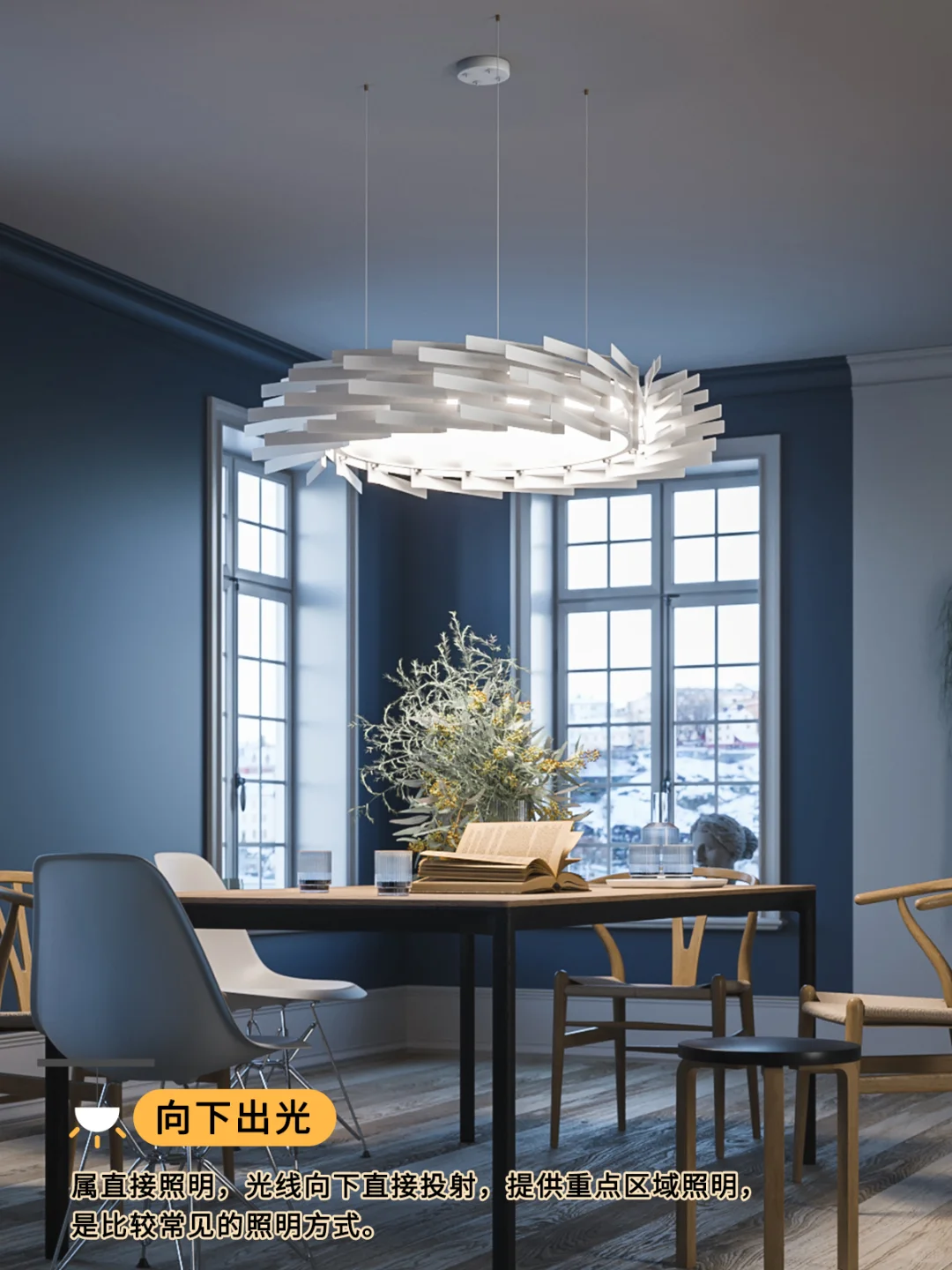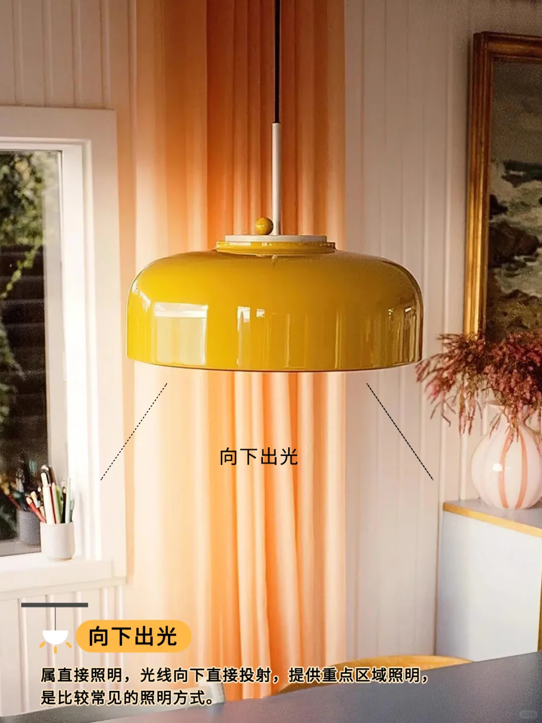 💡属直接照明,光线向下直接投射,提供重点区域照明,是比较常见的照明方式。