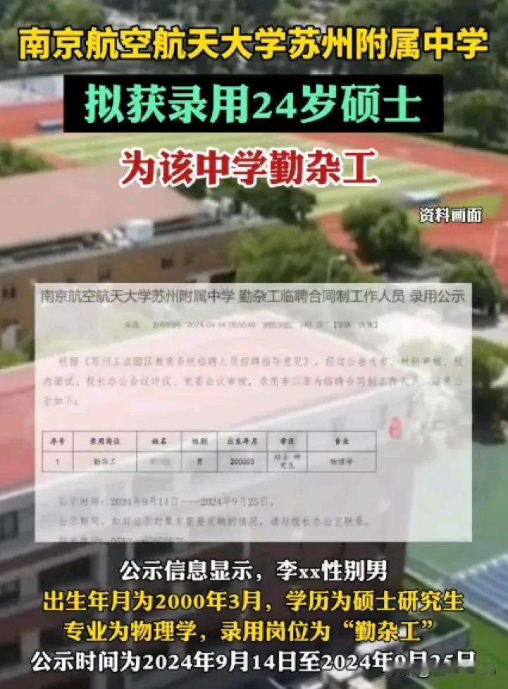 24岁物理学硕士拟被聘为勤杂工 网友:感觉太大材小用了,是不是也说明现在工作确实很难找。[捂脸]