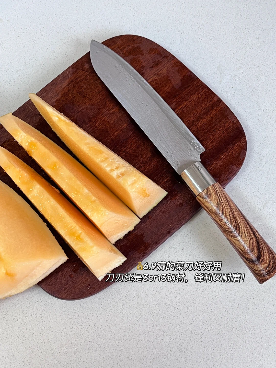没想到几块钱买到的菜刀🔪质量这么好,刀刃还用的是3cr13钢材,锋利又耐磨。披覆木纹手柄,防潮防腐还很好抓握!用来切瓜果、蔬菜太顺手了!