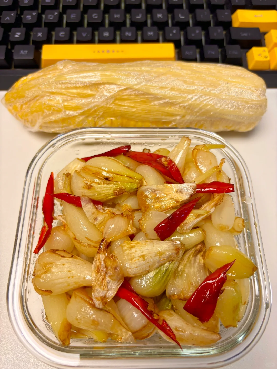 已经无心上班,回家倒计时3天 1⃣️早:烧麦、玉米、鸡蛋、牛奶(2.5💰) 2⃣️中:炒蕌头、玉米(3.8💰) 3⃣️晚:红烧茄子、玉米(1.4💰) 4️⃣水果:红李子(0.7💰) 合计:8.4💰