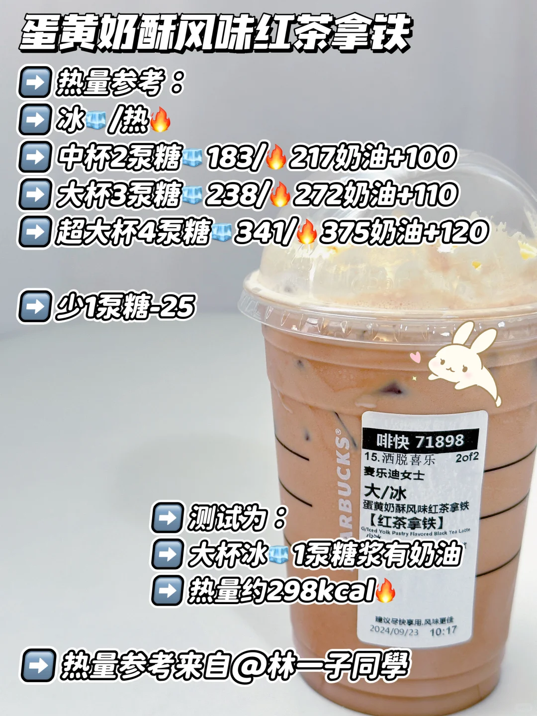 测试为:冰🧊1泵糖浆有奶油 热量约298kcal🔥✔