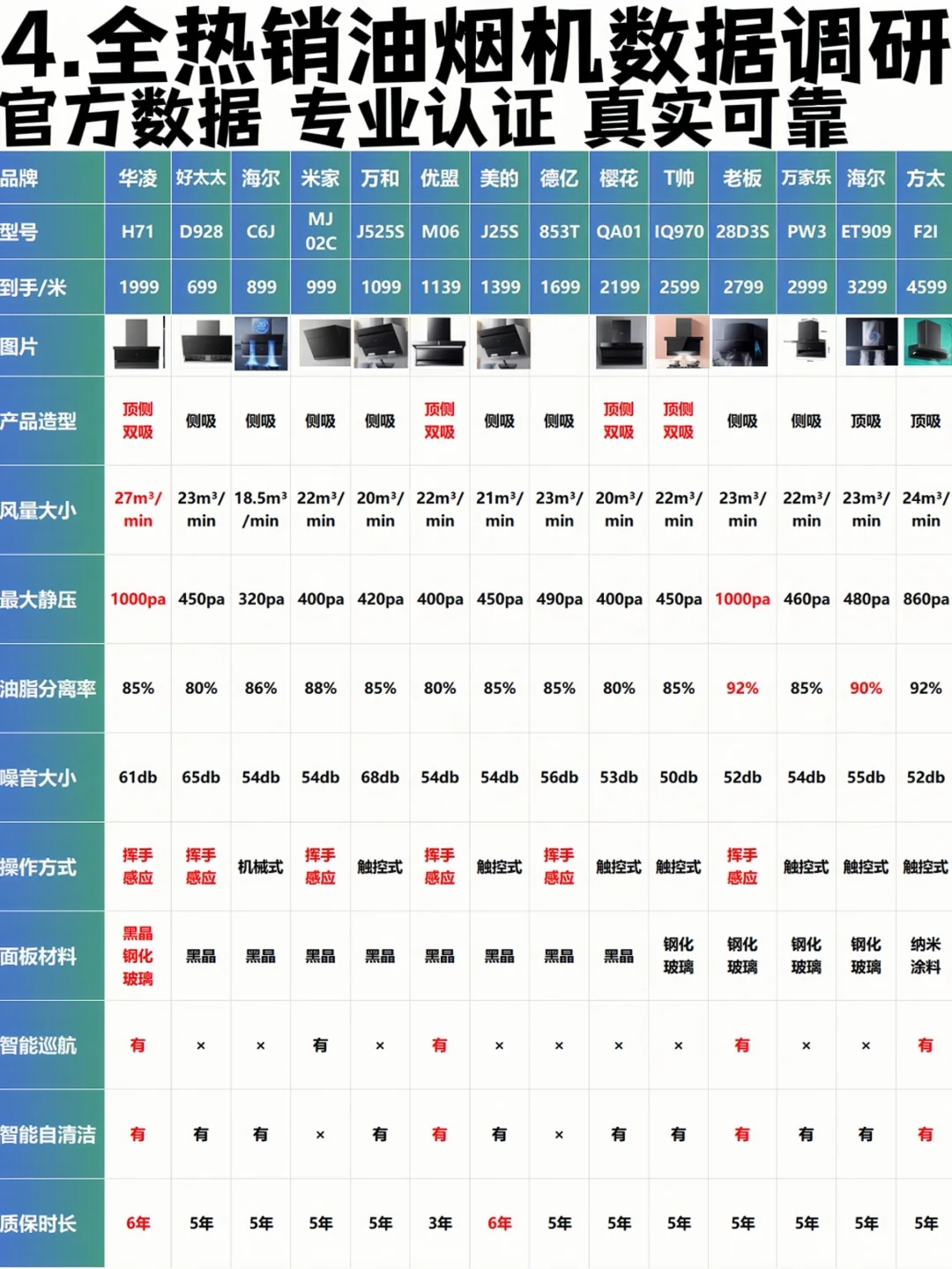 油烟机大牌热销款,关键数据来源于官方,商家都是经过专业机构检测认证,商家基本无法做假。数据真实可靠值得参考,有问题可以问我哦。