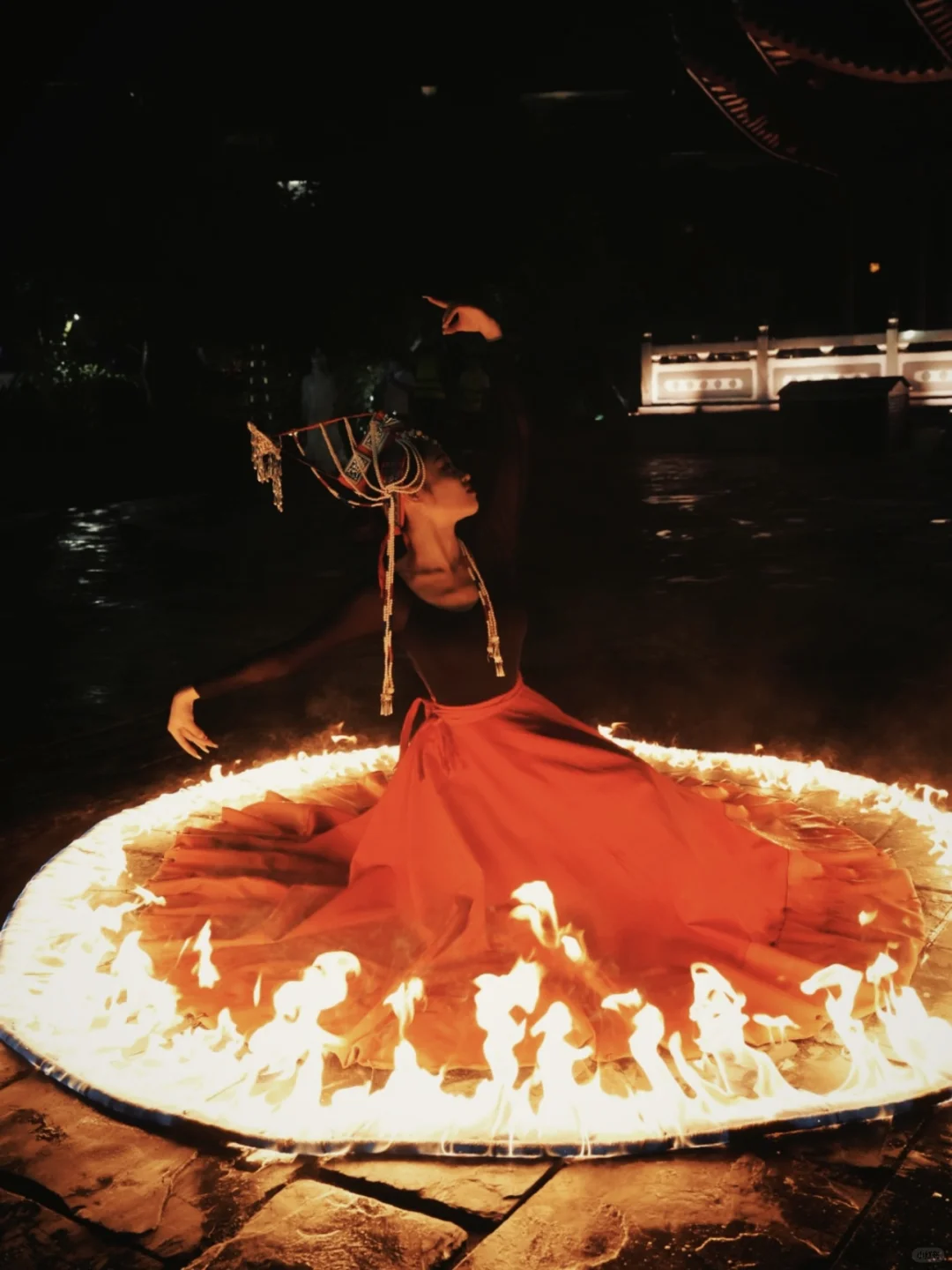 ☞火裙舞,美丽的姑娘穿着长裙翩翩起舞,在裙摆下燃起熊熊火焰,无不展现当地传统民俗的魅力