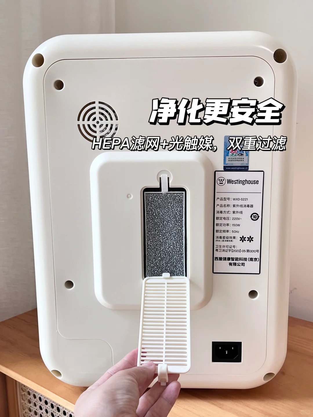 🟢它还自带了双材质复合型过滤系统,除了常规的HEPA滤网,还增加了空气净化器常用的光触媒过滤技术,净化更安全!