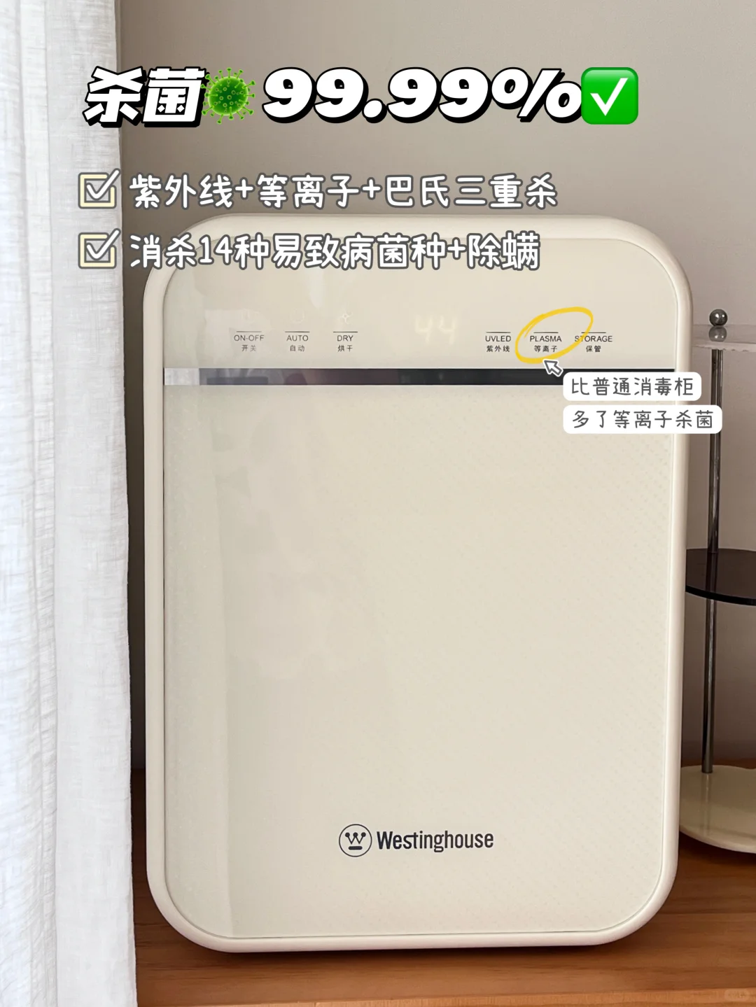 🟢它最打动我的是360°全方位杀菌,比普通的消毒柜多了等离子杀菌技术,紫外线➕等离子➕巴氏消毒💪💪三重杀毒,高效杀菌99.99%!