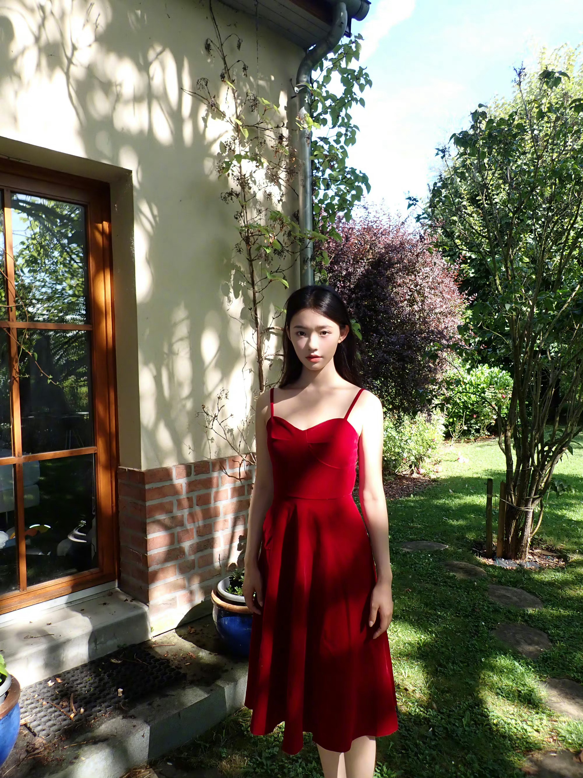 林允好惊艳的红裙!!!吊带裙好适合允儿啊!!!