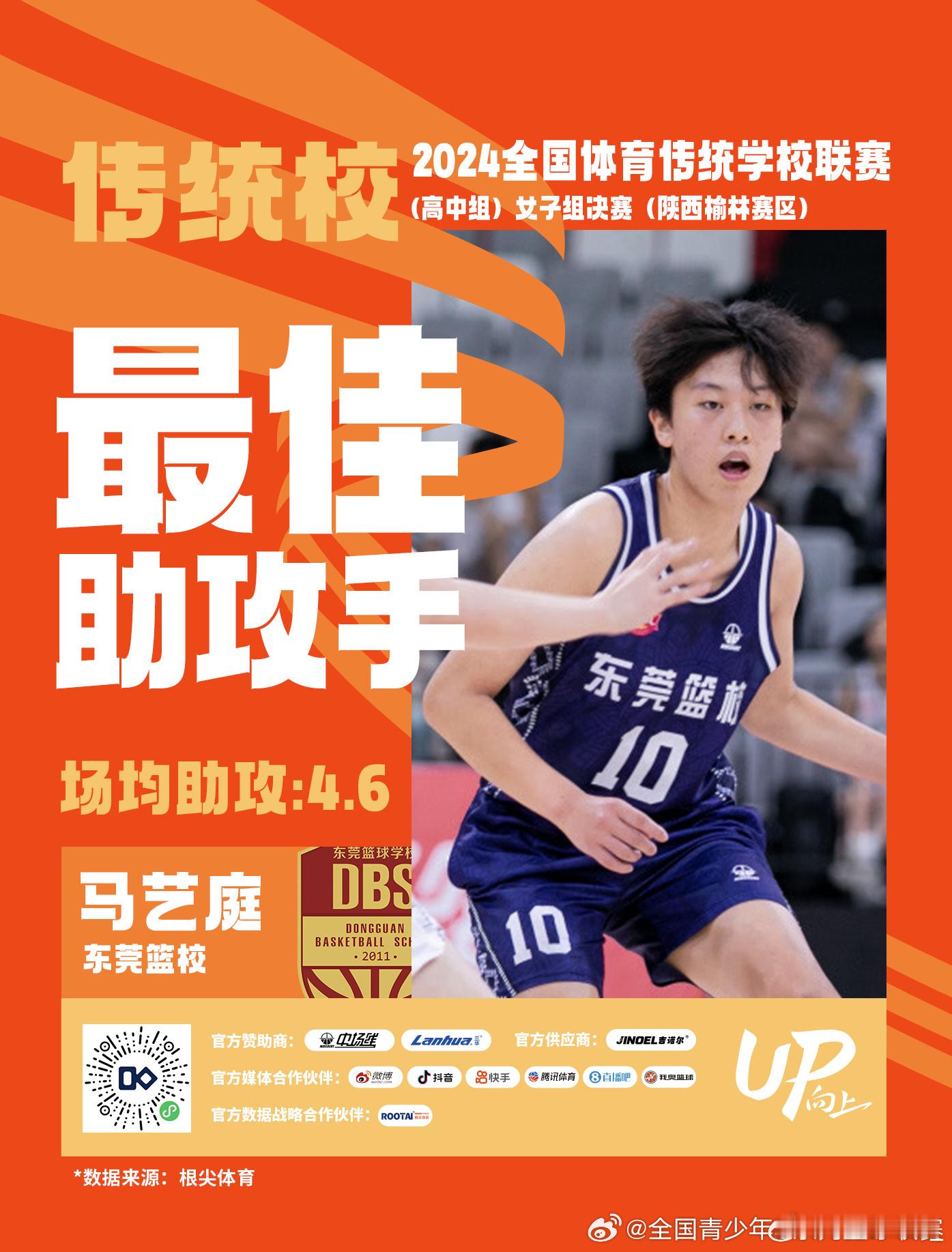 最佳助攻手:马艺庭 东莞篮校 场均助攻:4.6