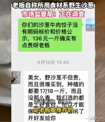 事件迅速在网络上发酵,引起了网友们的热议。许多网友表示,这个价格远远超出了常规认知,即便是高级餐厅的精致水饺,也难以达到如此高价。特别是对于沙葱这种食材,网友们纷纷质疑其是否真的具有如此高昂的价值。老板方面则回应称,他们所使用的沙葱是野生的,价格较为昂贵,且为了保证口感,选用了上等食材,因此水饺价格自然偏高。